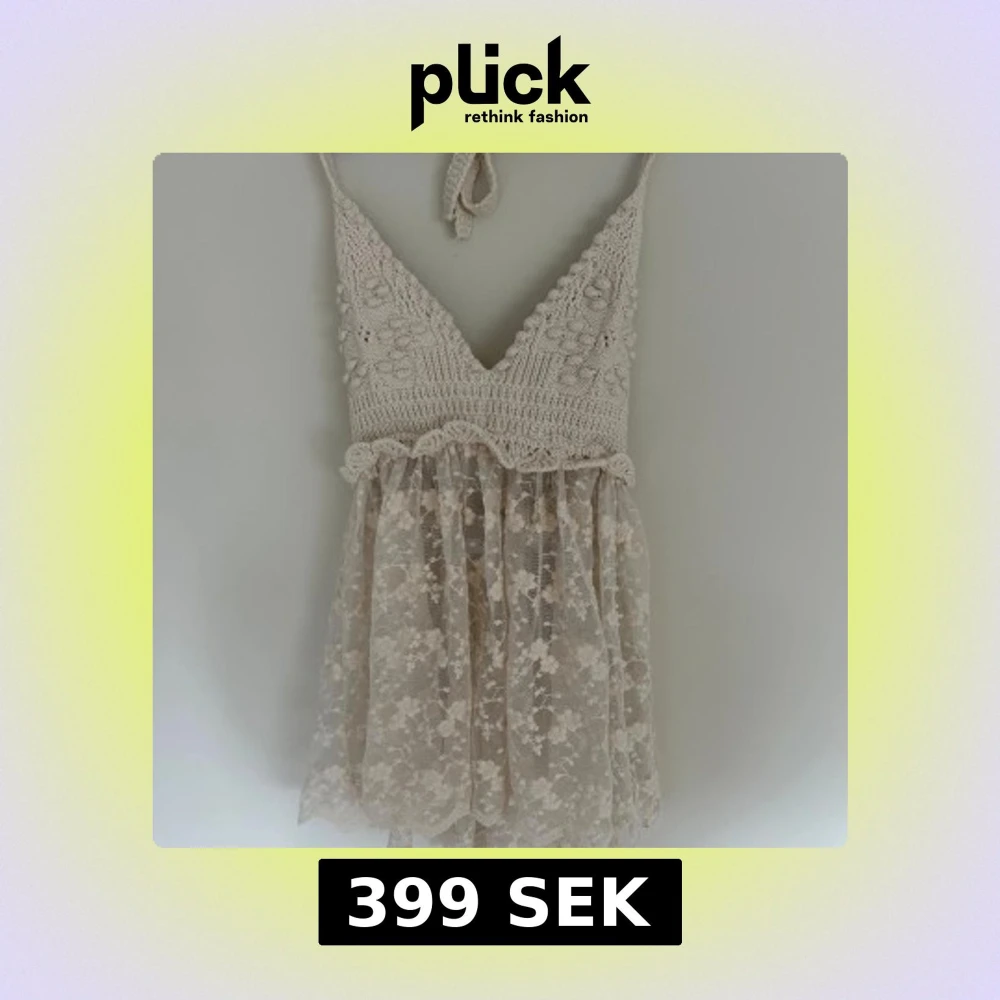 Supersöt topp i beige med virkad överdel och djup v-ringning. Toppen är i transparent spets med blommigt mönster och volangkant. Toppen har smala axelband som knyts i nacken och öppen rygg. Perfekt för sommarens alla tillfällen!