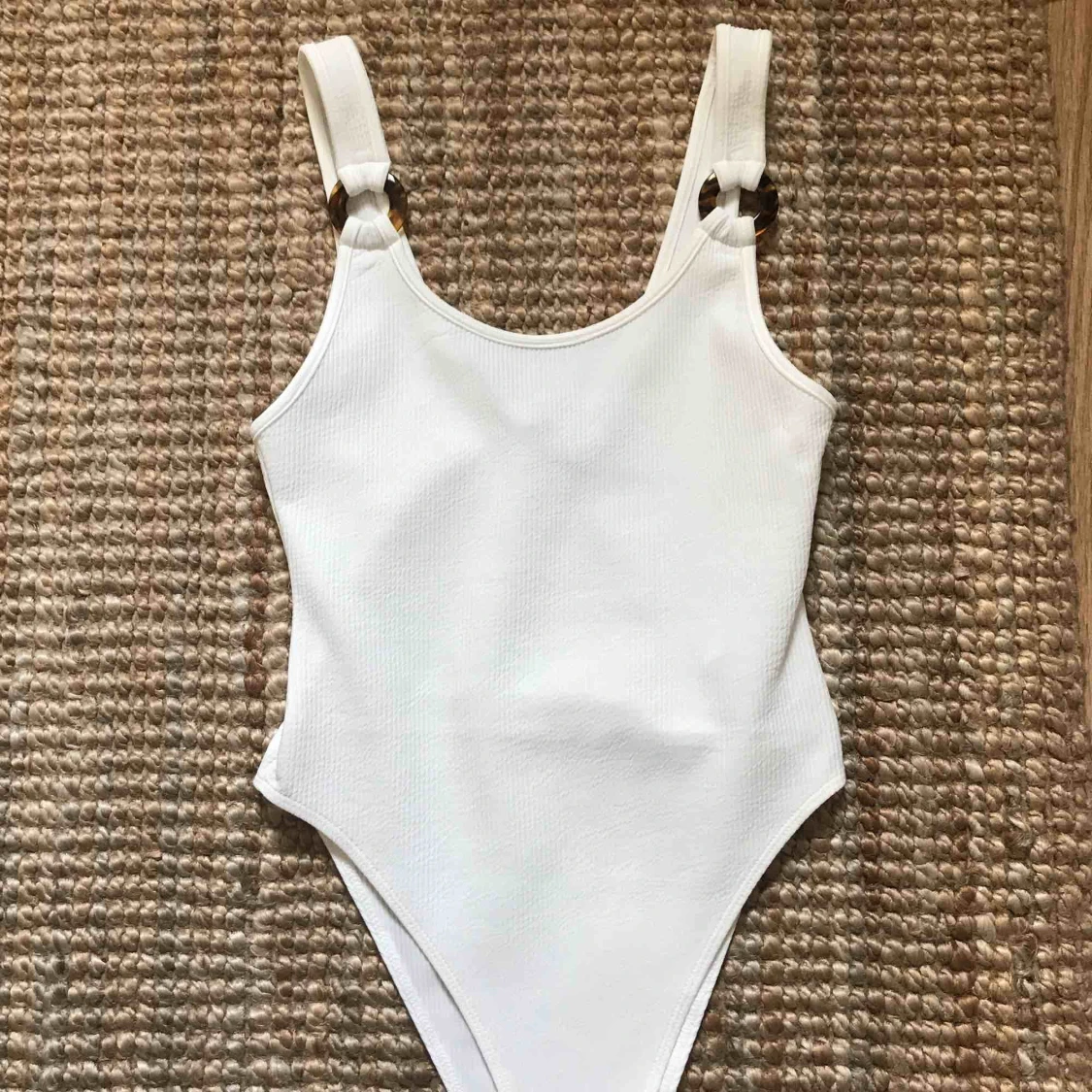Supersnygg ribbad body, är i storlek XS men kan också användas av S, superfina spännen,helt oanvänd☀️☀️
