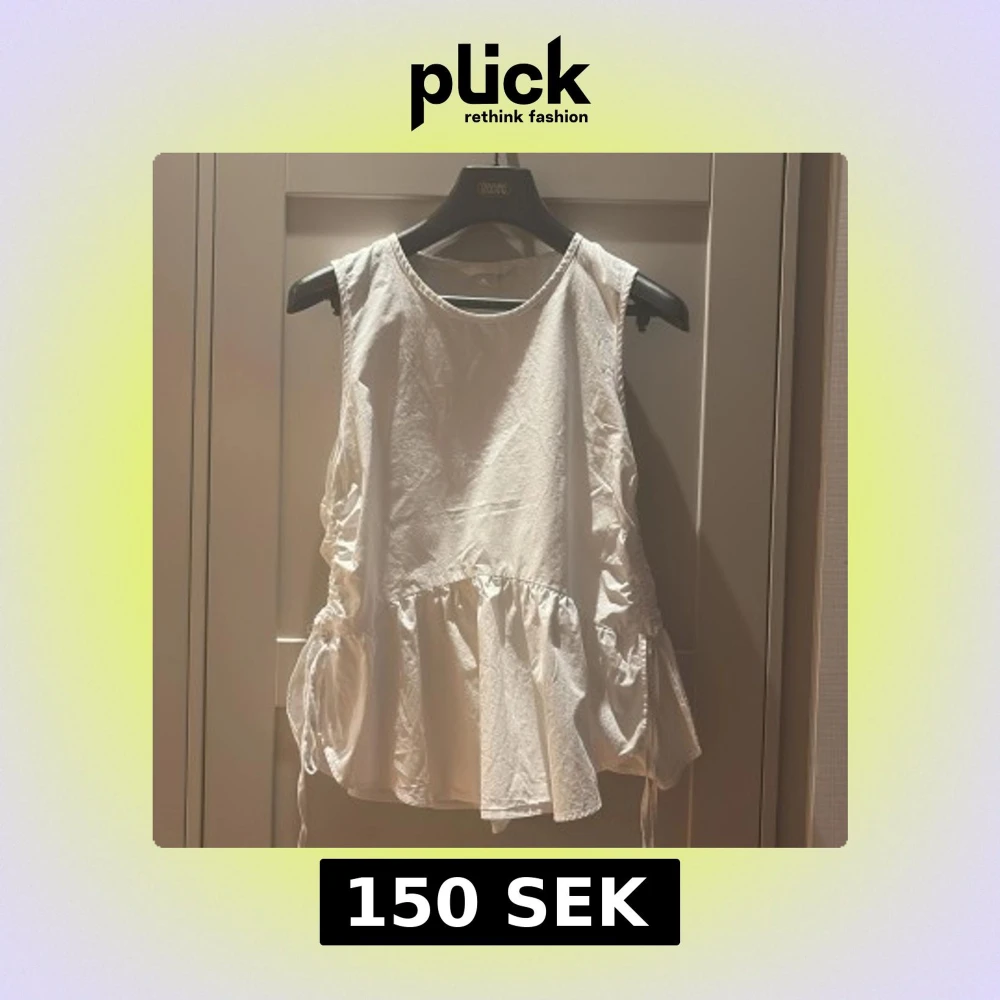 Säljer en söt vit ärmlös topp från H&M med volangdetaljer i nederkant. Perfekt för varma dagar och kan enkelt matchas med olika outfits. Toppen har en lös passform och är tillverkad i ett lätt material.