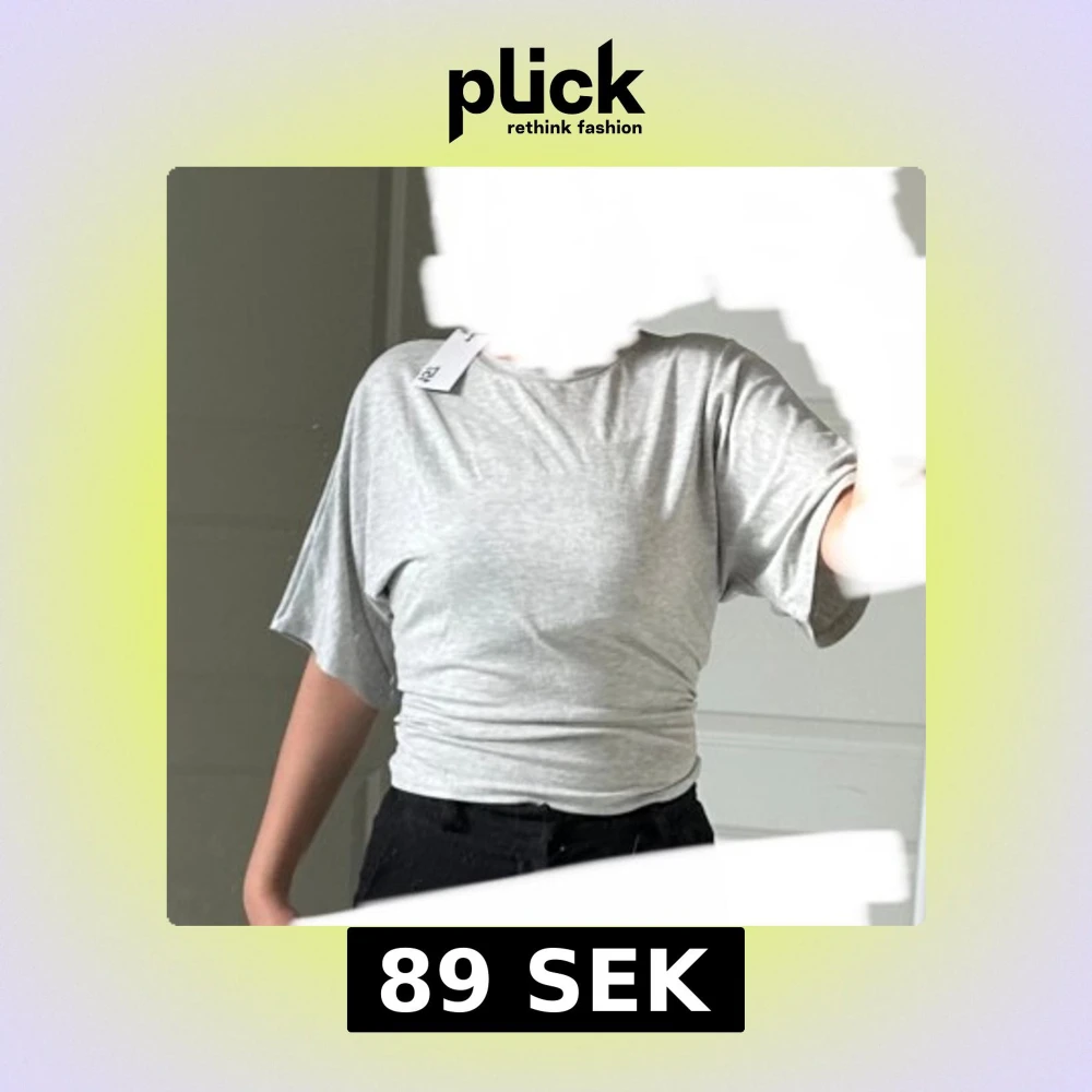 Säljer en ljusgrå t-shirt som är tajt i midjan med korta ärmar och rund halsringning. Toppen har en enkel och stilren design i mjukt material, perfekt till vardags. Passar dig som gillar en avslappnad och trendig look. Lappen sitter kvar så den är aldrig använd.