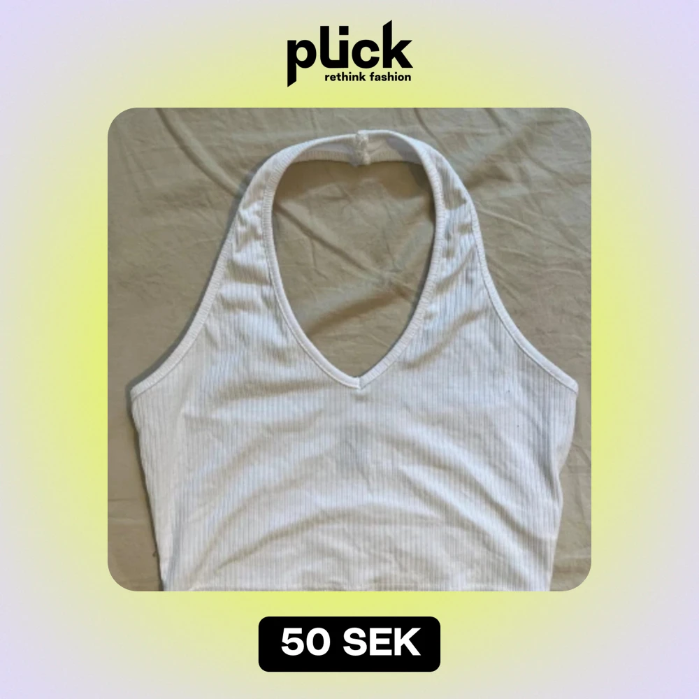 Superfin halterneck som är vit och ribbad, helt oanvänd så nyskick, storlek Xs💕