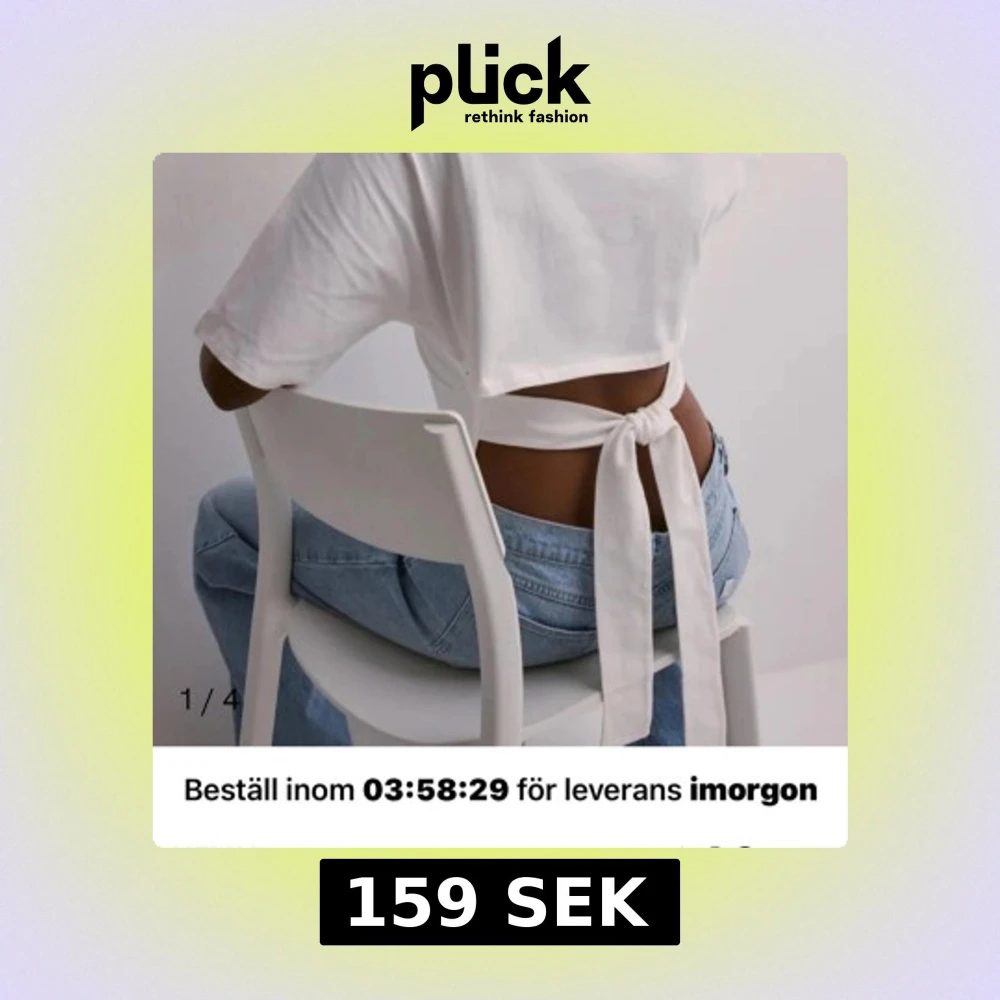 En vit ”open back tie tee” från Nelly 💘 som ny inte använt många gånger, om du har några frågar kom privat!!