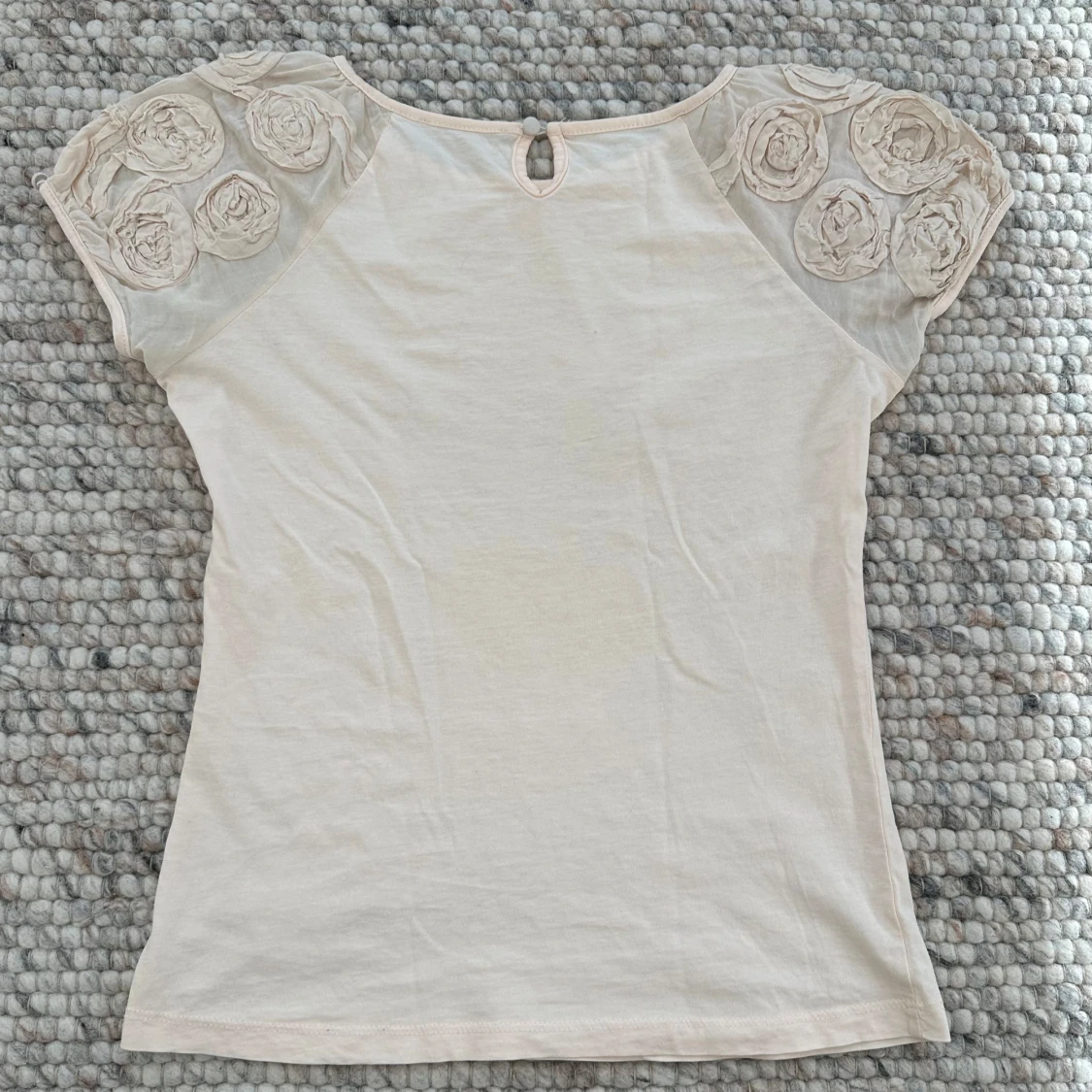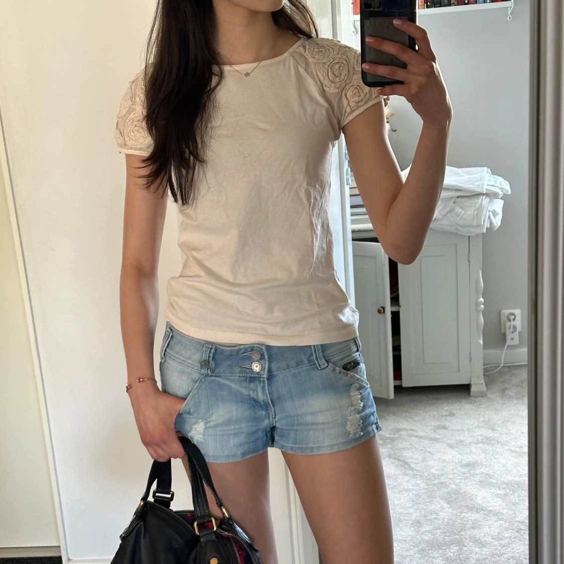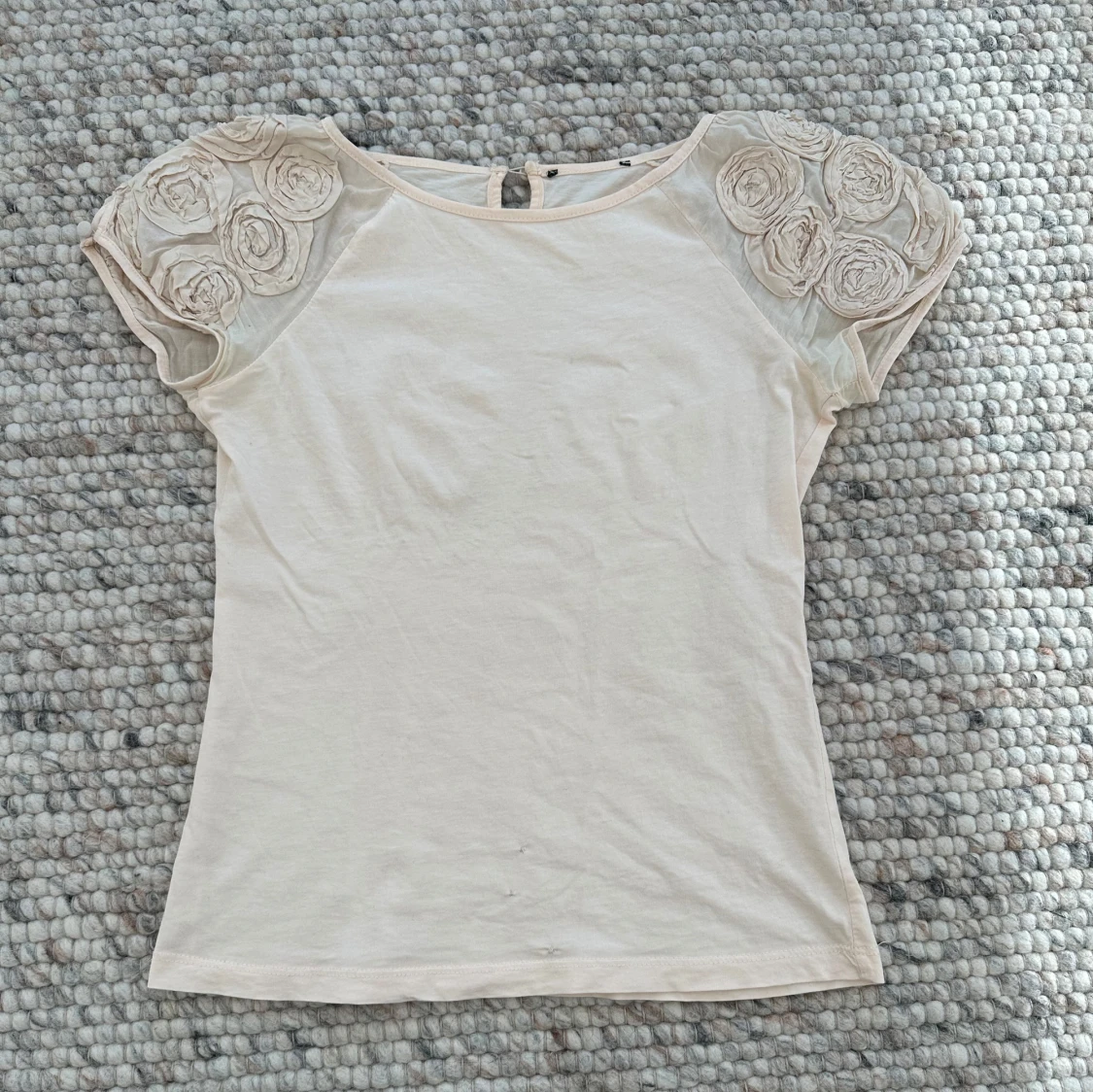 Hej! Jag säljer den här jättesöta blusen med 3D blommor på ärmarna som passar perfekt till sommaren! Den har några få pyttesmå lagningar längst ner därav priset. Toppen passar en xs-s. Tveka inte att skriva vid frågor och pris kan diskuteras🤗