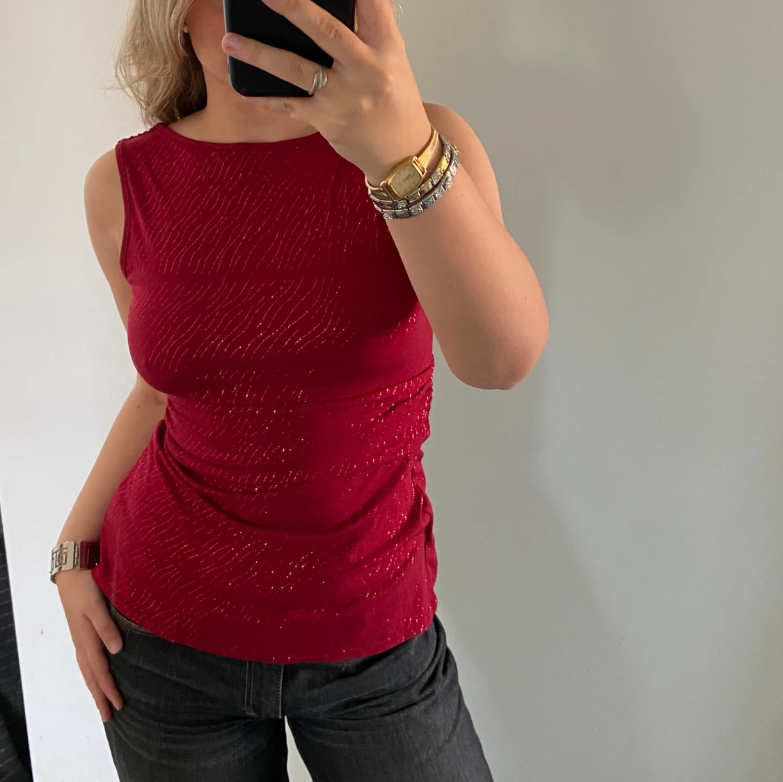 Säljer denna söta rödglittriga festtoppen så den inte kommer till användning. I storlek S. Inga defekter.
