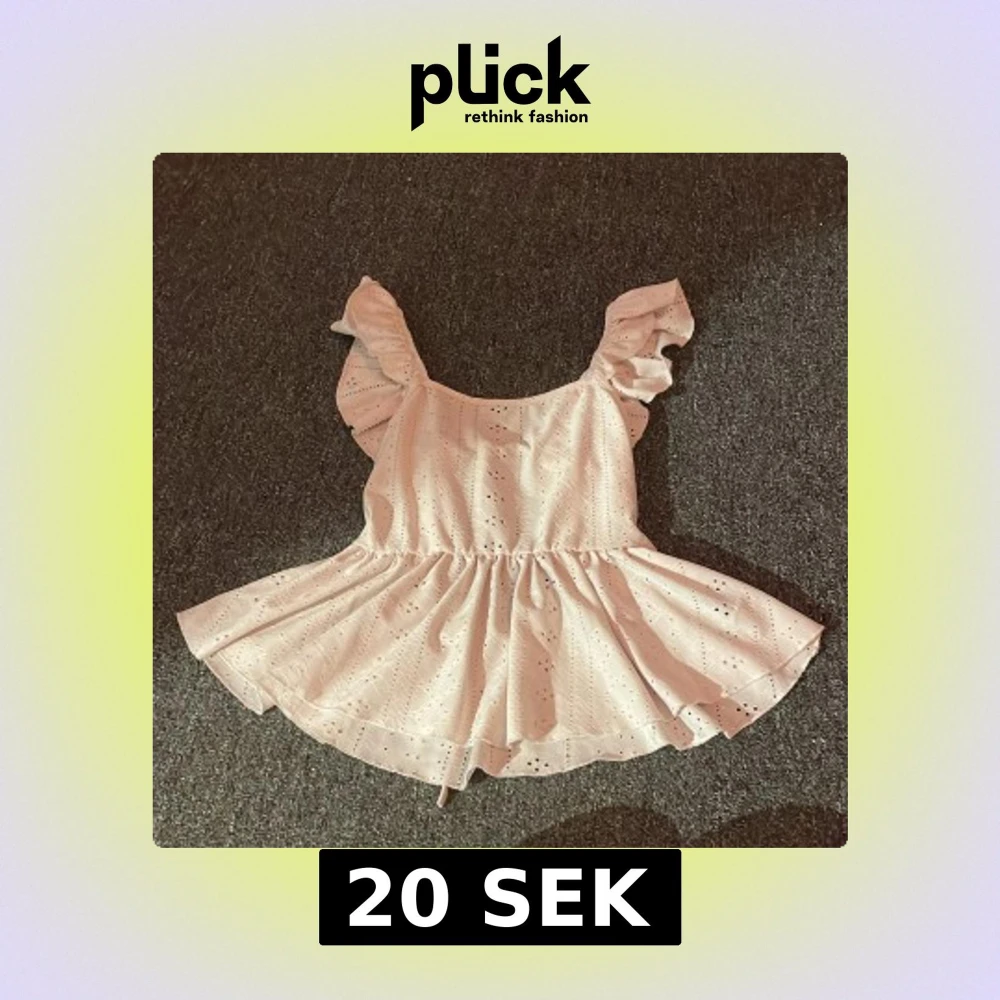Supersöt ljusrosa topp från SHEIN i storlek XS. Toppen har volangärmar, broderade detaljer och snörning i ryggen. Materialet är lätt och känns som bomull, perfekt för varma dagar. Den har ett romantiskt mönster med små hål och en söt, utställd kjol.