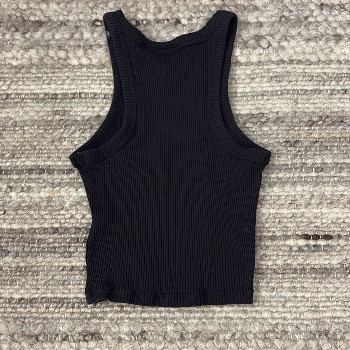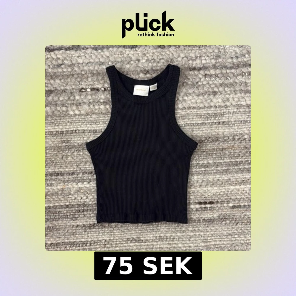Säljer en stilren svart ribbad linnetopp från Gina Tricot. Toppen har en enkel design med rund hals och ärmlös stil, perfekt för en avslappnad. 🖤