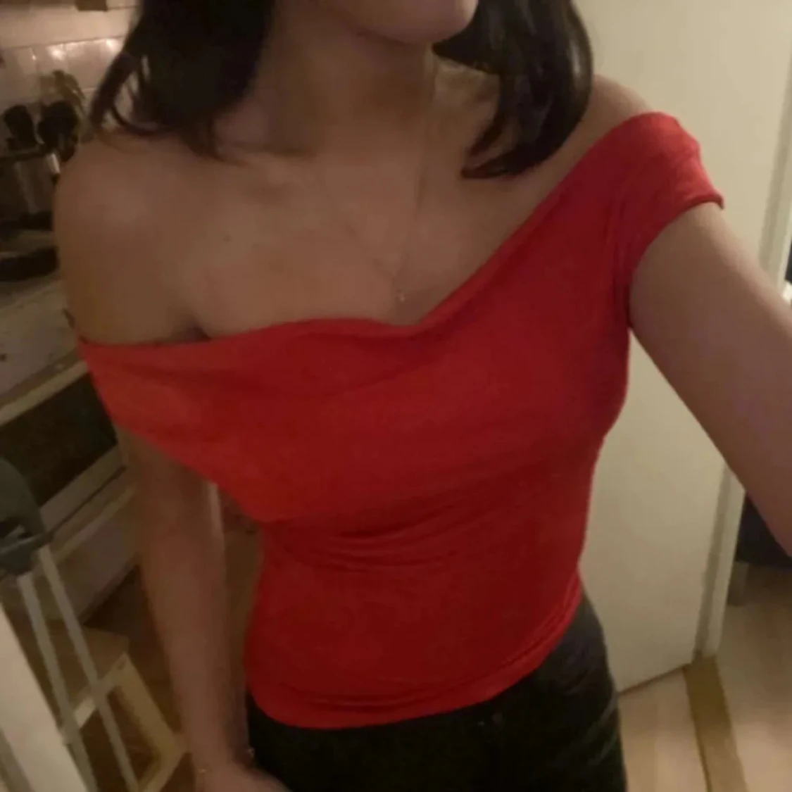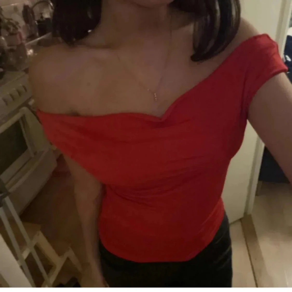 Snygg röd topp med offshoulder-design och tight passform. Tunt och stretchigt material som sitter skönt mot kroppen. Perfekt för dig som vill sticka ut med en enkel men trendig look.