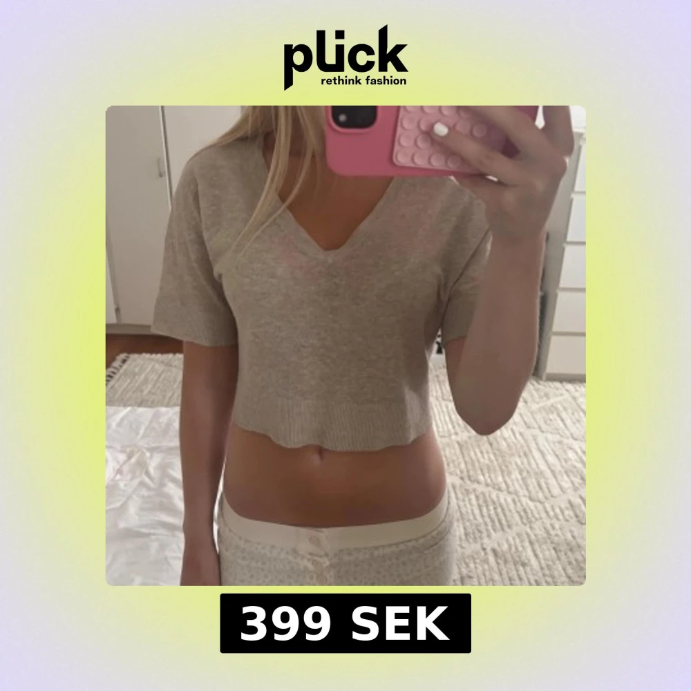 Beige croppad linne topp