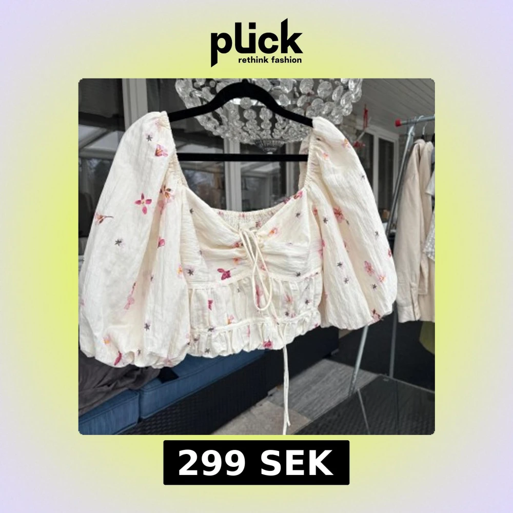 Charmig blommig blus med puffiga ärmar. Blusen har ett knytband framtill och ett elastiskt parti på baksidan för en bekväm passform. Perfekt för vår och sommar!🌸💕🌸💕aldrig använd
