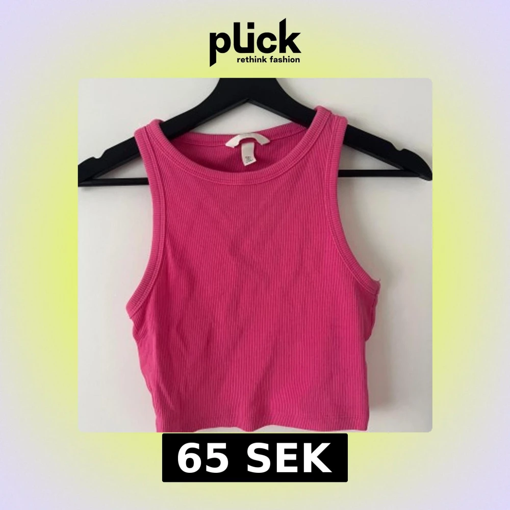 Säljer en rosa ribbad croppad linnetopp från H&M. Toppen har en tight passform och är ärmlös med rund halsringning. Perfekt för varma dagar i sommar💗💗