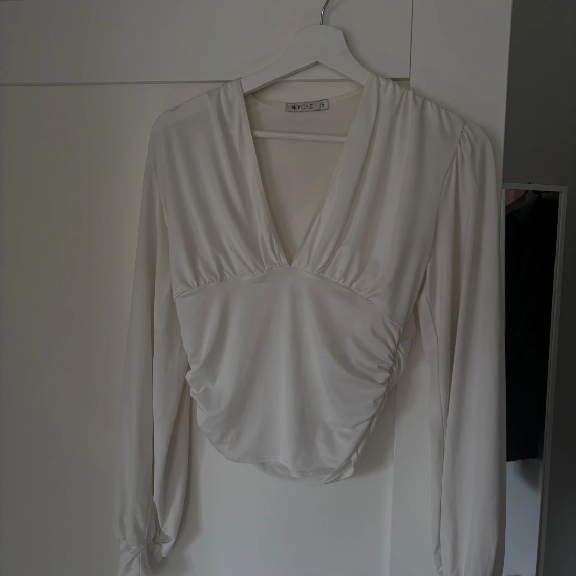 Vit topp med djup v-ringning och långa ärmar från Nelly.