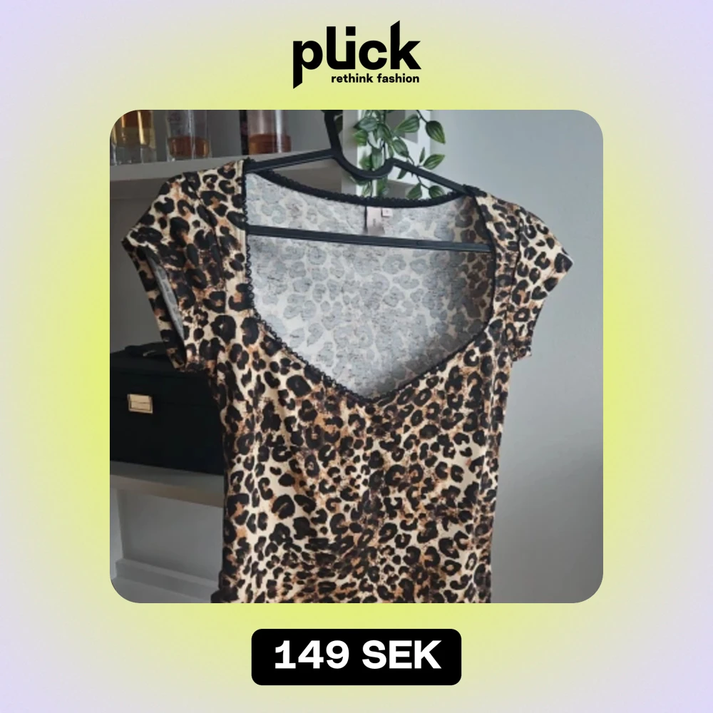 Säljer en snygg leopardmönstrad topp med korta ärmar och v-ringning. Toppen har fina spetsdetaljer runt halsen som ger en extra touch. Perfekt för en utekväll eller fest!