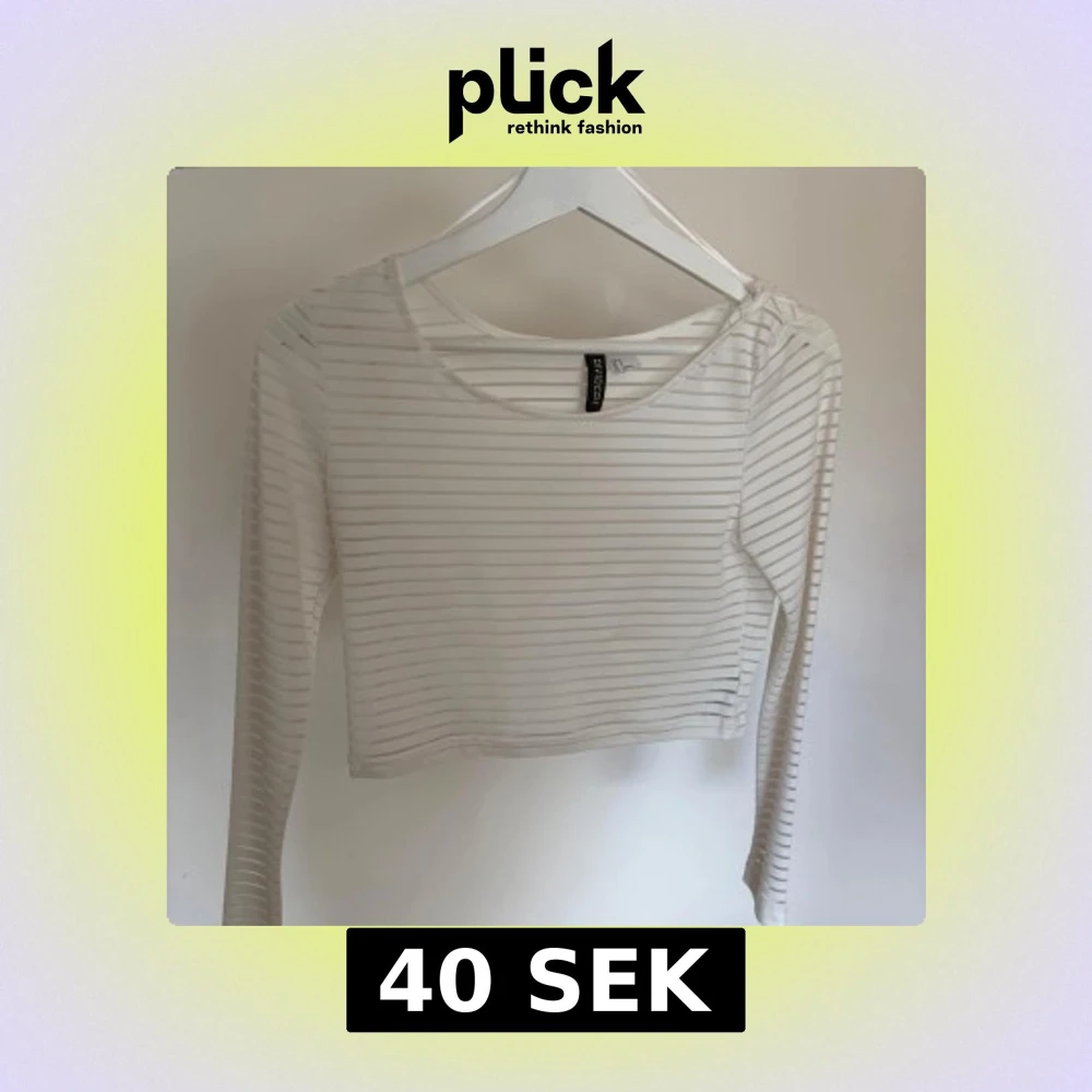 Säljer en croppad långärmad topp från H&M i vitt med tunna ränder. Toppen har rund halsringning och är tillverkad i ett mjukt, stretchigt material. Perfekt att styla med höga jeans eller kjol.