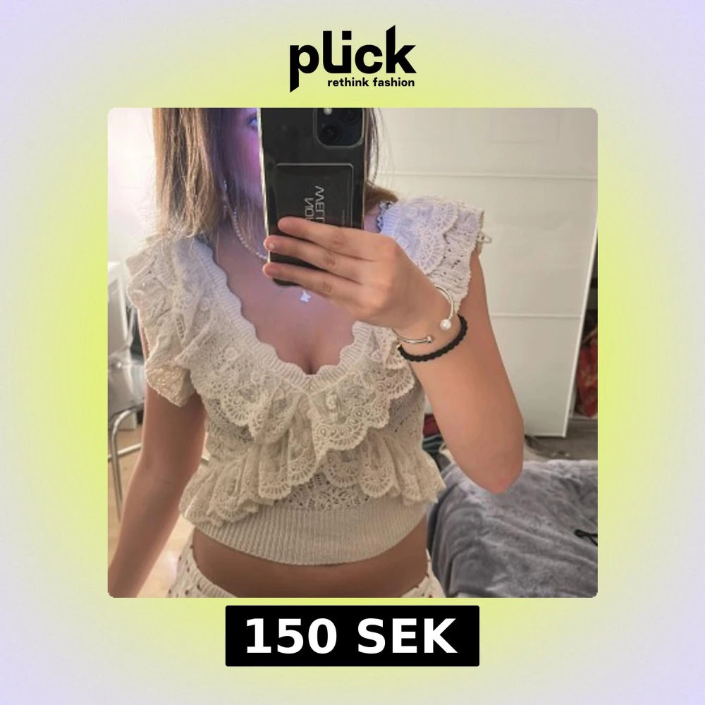 Säljer en söt vit blus med v-ringning och volanger fram. Passar perfekt nu till sommaren!!