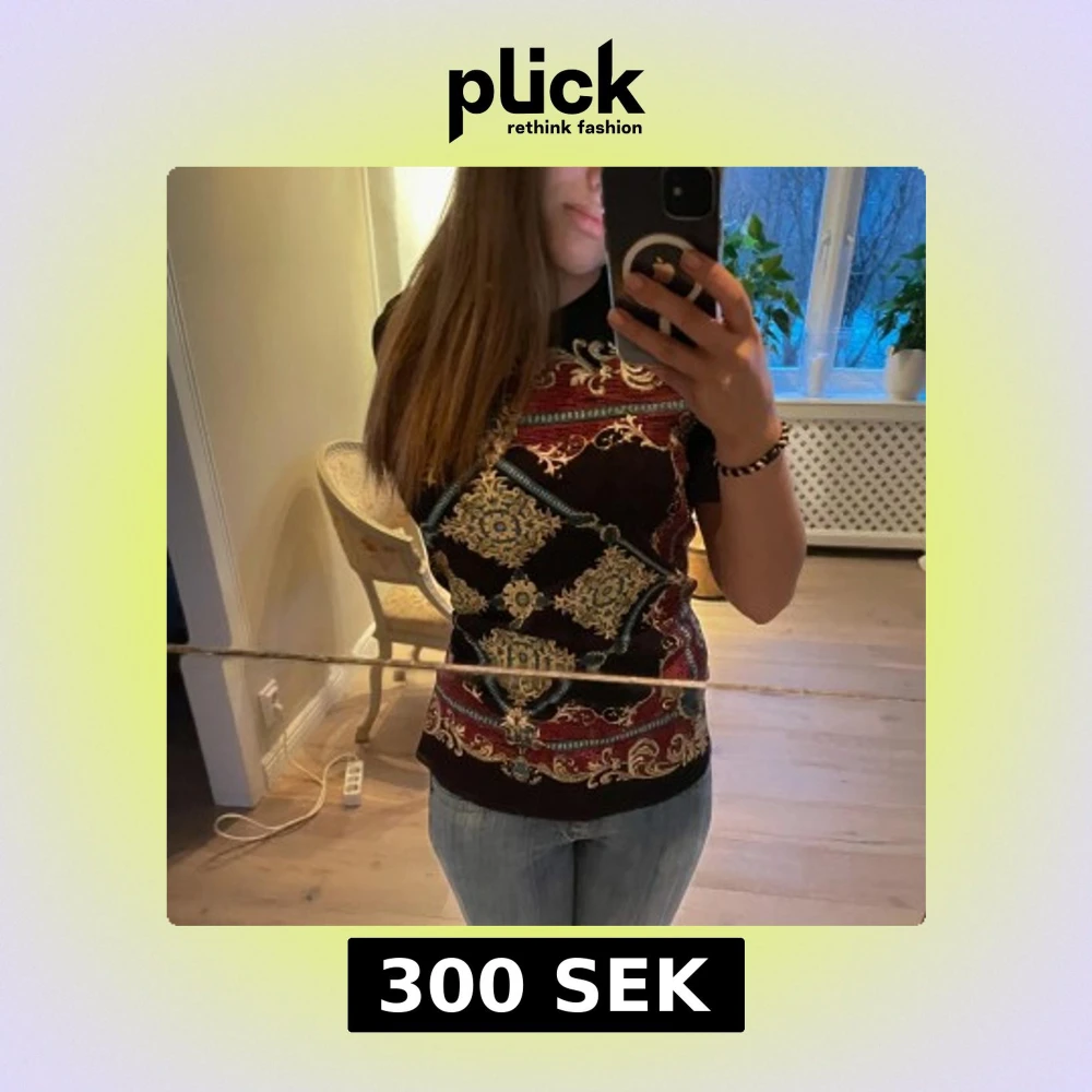 VINTAGE ZARA TOPP - NWOT ZARA Basic Black Gold Metallic Ornate T-shirt Top Raw Hem Women Vintage ZARA t-shirt köpt i Spanien, en väldigt unik topp! ONE OF A KIND ❤️🔥 STORLEK - XL PRIS går att diskutera Skriv om du har frågor 🫶