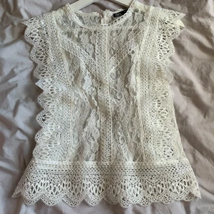 En väldigt somrig topp som går att matcha till mycket. Den är väldigt genomskinlig men beroende på hur man vill ha den så funkar den bra med ett linne under🥰