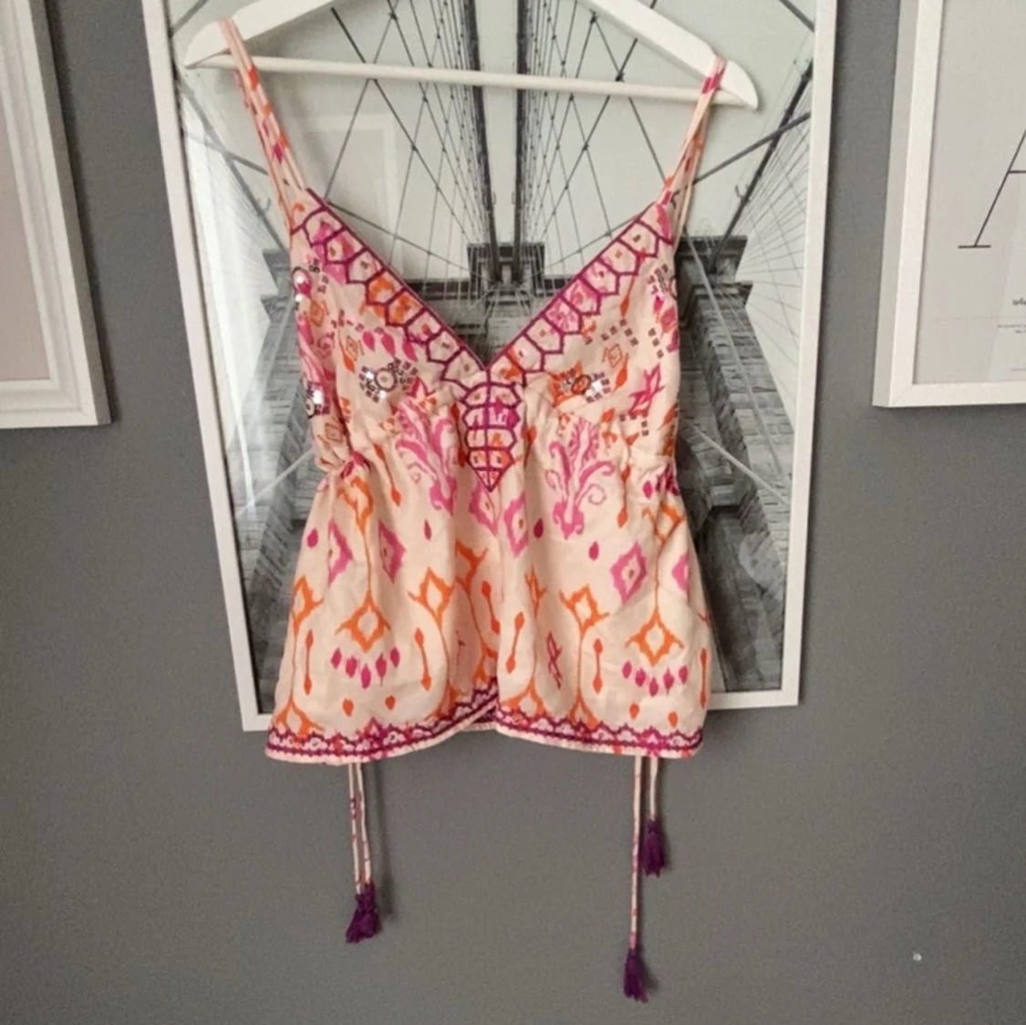 Säljer en jättefin sommartopp! Säljer för att den inte har används (den har aldrig används, bara testats). Den är öppen i ryggen! Hör av er vid frågor och funderingar💘💞