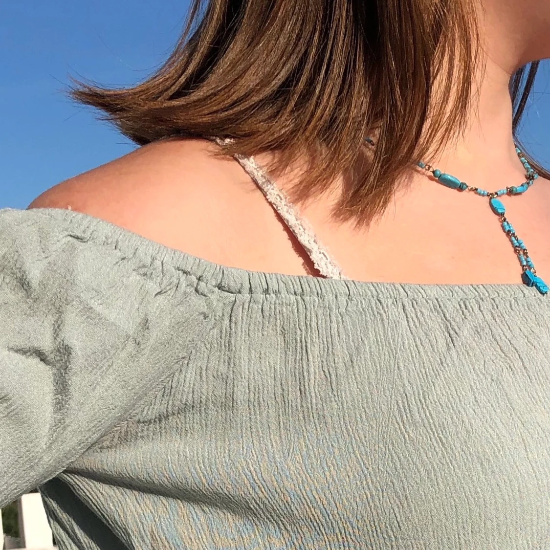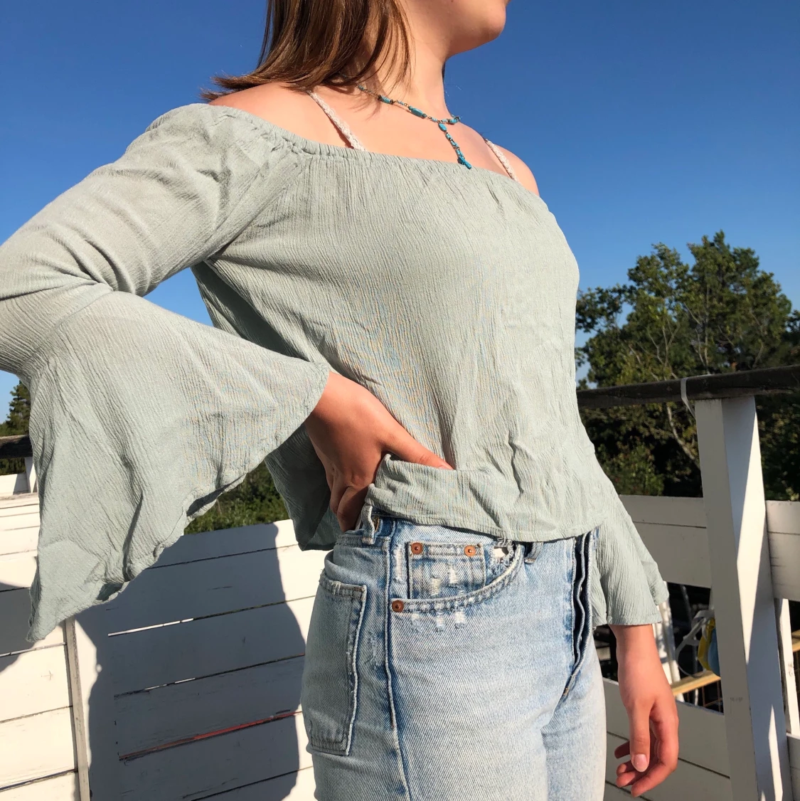 Snygg och luftig off-shoulder topp! Blå/grön/grå färg