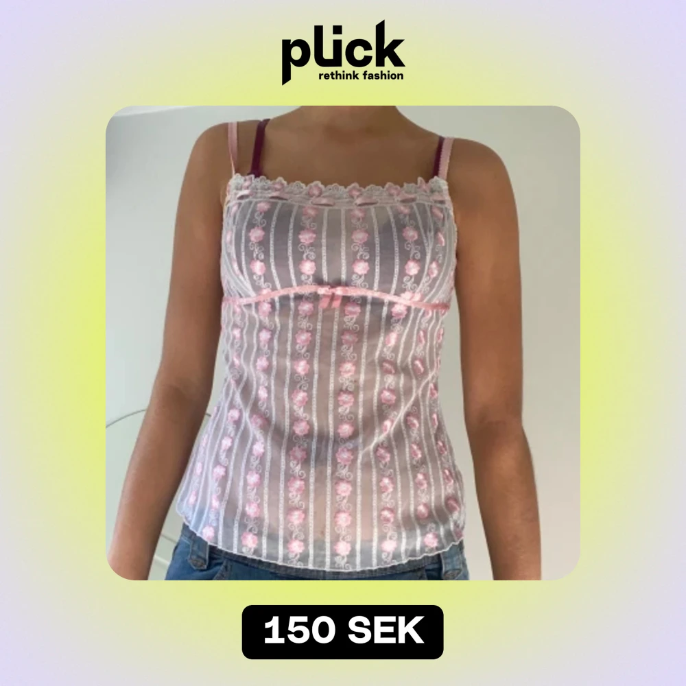 Säljer en superfin linne i rosa och vitt med blommigt mönster. Den har smala axelband och en söt liten rosett framtill. Perfekt för sommardagar eller som ett sött lager under en kofta. Så söt!!!