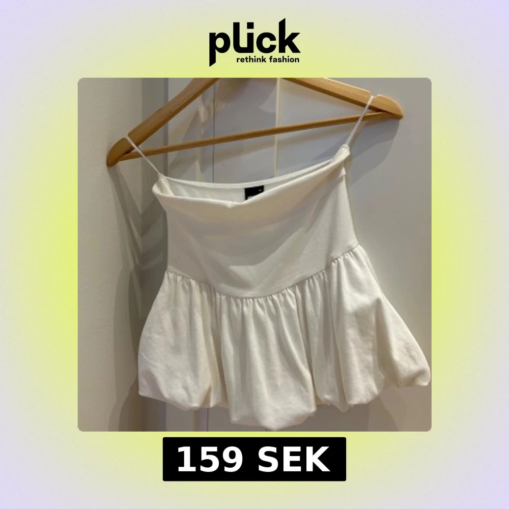 Supersöt vit tubtopp från Gina Tricot med volang, puffig nederdel. Toppen har en rak, något draperad halsringning och är tillverkad i mjuk bomull. Perfekt för en fräsch och trendig look i sommar.