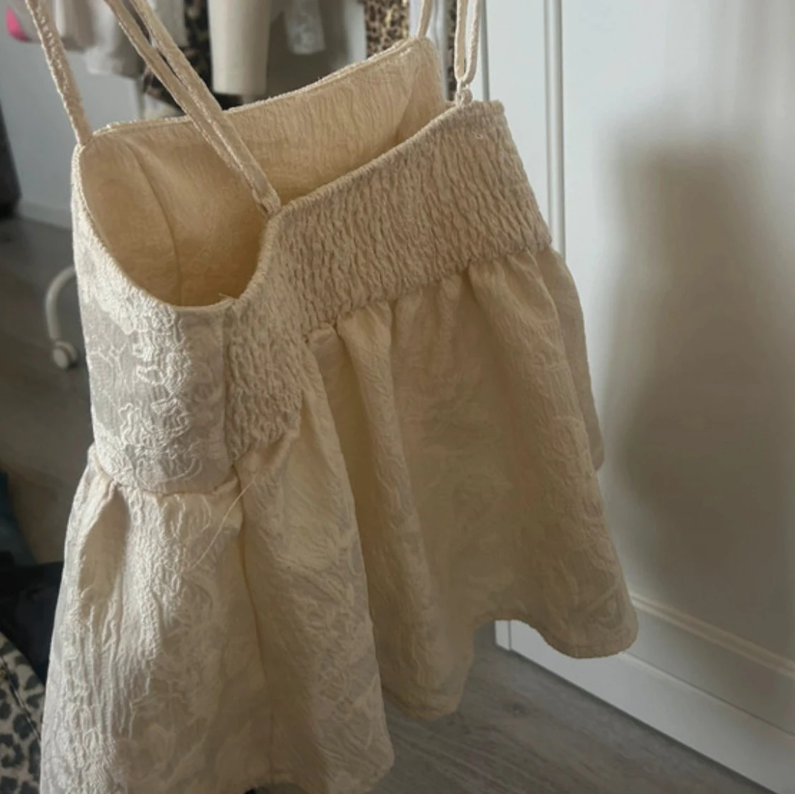 Säljer en beige topp som endast är andvänd ett par gånger. Den där lite längre där bak och kortare där fram