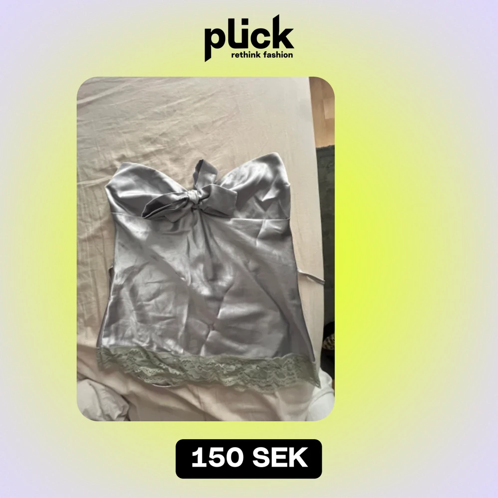 Super fin fest topp som man kan knyta där bak så att den blir tajt i midjan. Som ny! Det står ingen storlek men skulle säga S-M! Bandeau topp i silver med rosett.