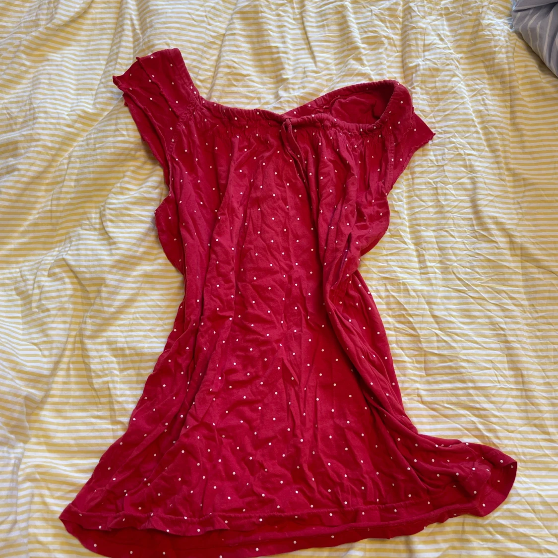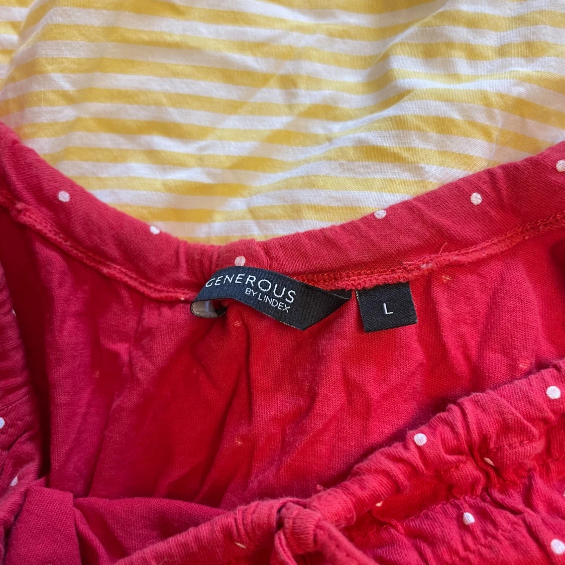 Säljer denna prickiga söta sommartoppen då den inte riktigt passar mig längre! Storlek L står det i den men skulle säga att den sitter mer om en M. Hör av dig vid fler frågor eller om du vill ha fler bilder!❤️