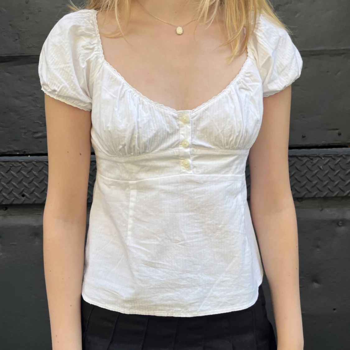 En söt vit topp från Brandy Melville endast testad, så i nyskick Nypris: ca 280kr