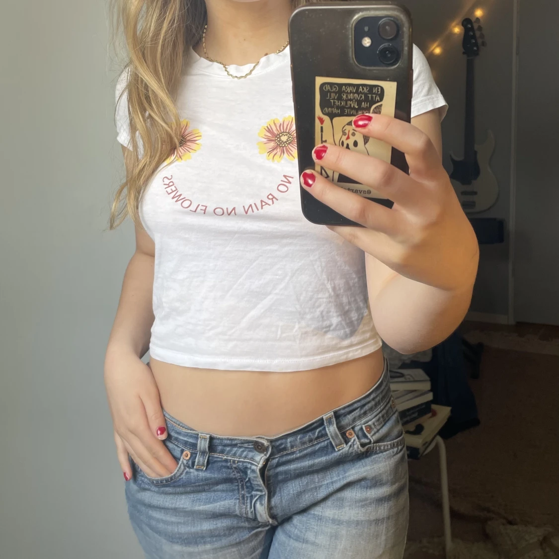 Söt topp med tryck från Monki. Toppen är i storlek XXS, men jag är en S och har använt den som croptop.