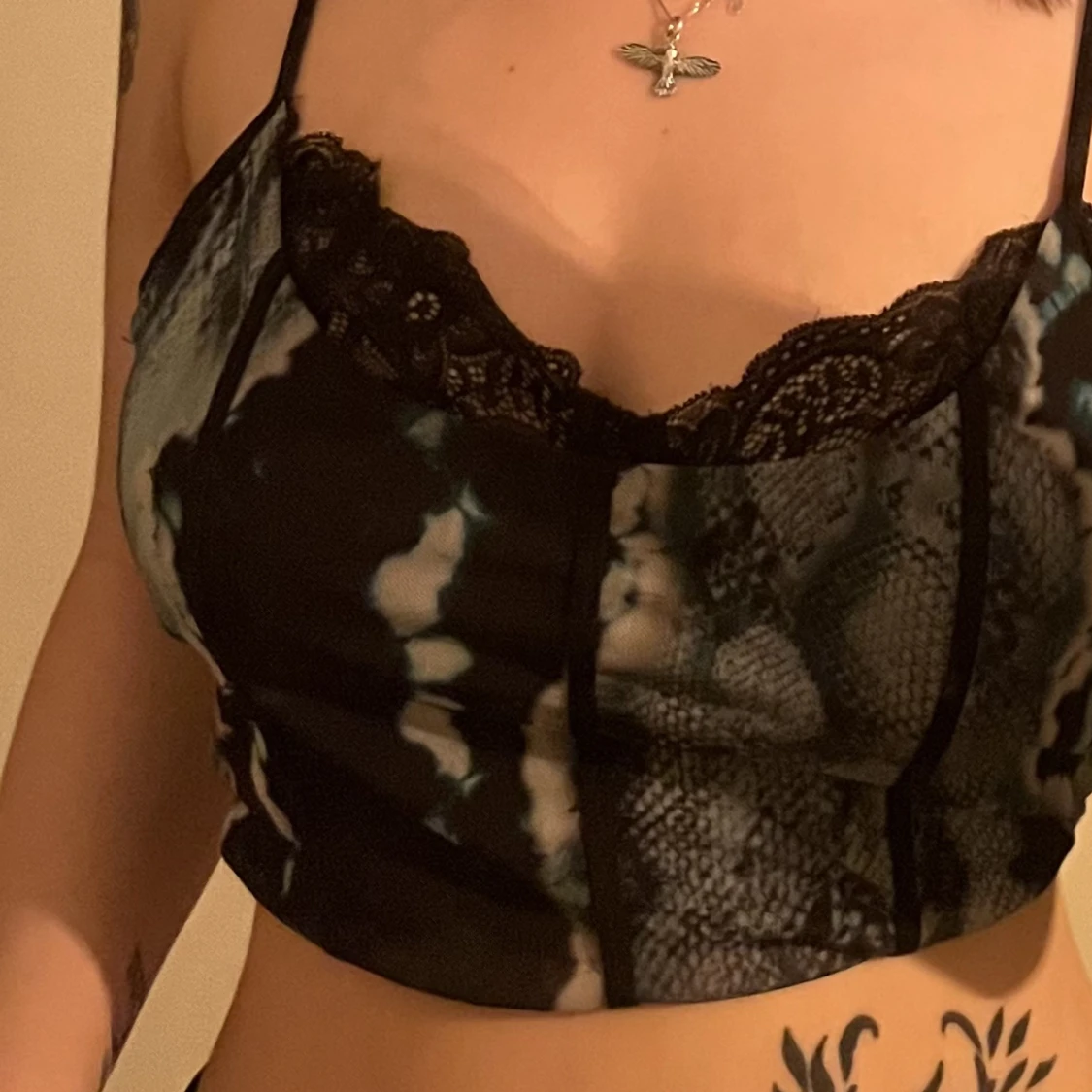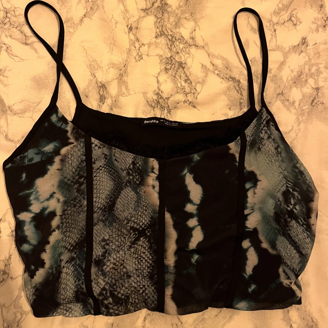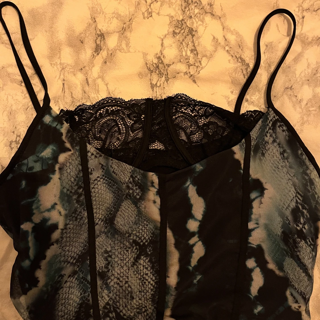 Blåaktigt linne med inbyggd spets. Knappt använd.