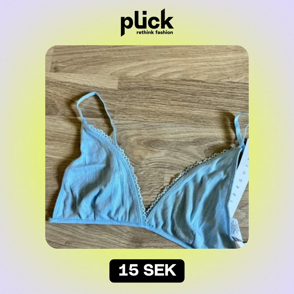 En ljusblå bh från Missguided med spetsdetaljer längs kanterna. Bhn har smala axelband och en triangulär form. Justerbara axelband men ingen på bandet runt. Liten i storlek, mer än M än en L.