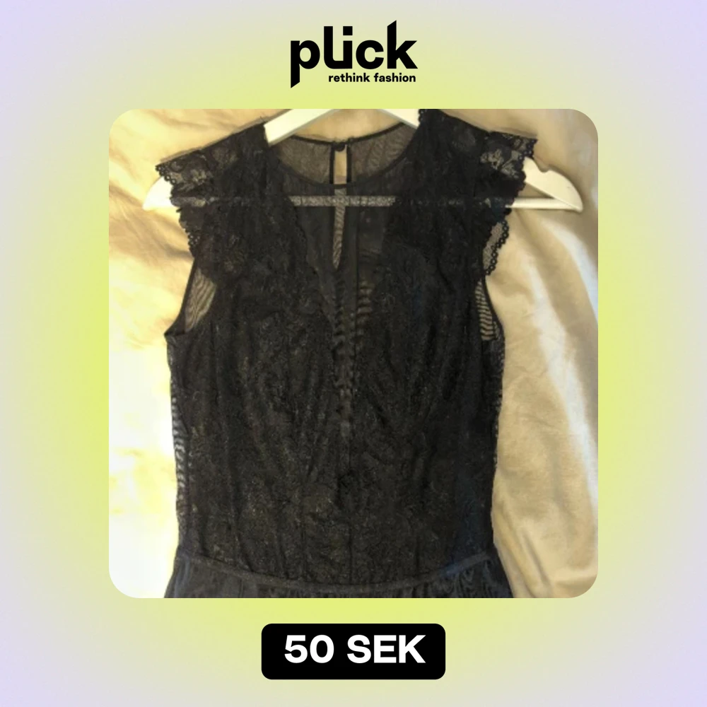 Svart snygg spetsbody som passar perfekt till fest eller under en kavaj! Storlek står ej men skulle säga S, inga lappar inuti. En ”knapp” i nacken och tre små tryckknappar ned till. Använd men fint skick! Katt finns i hemmet Köparen står för frakten