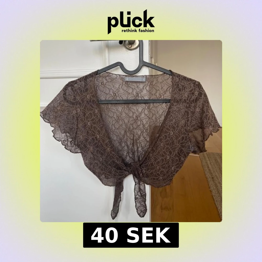 Säljer en brun spetsbolerotopp från Åhléns med korta ärmar och knytning framtill. I gott skick🤎