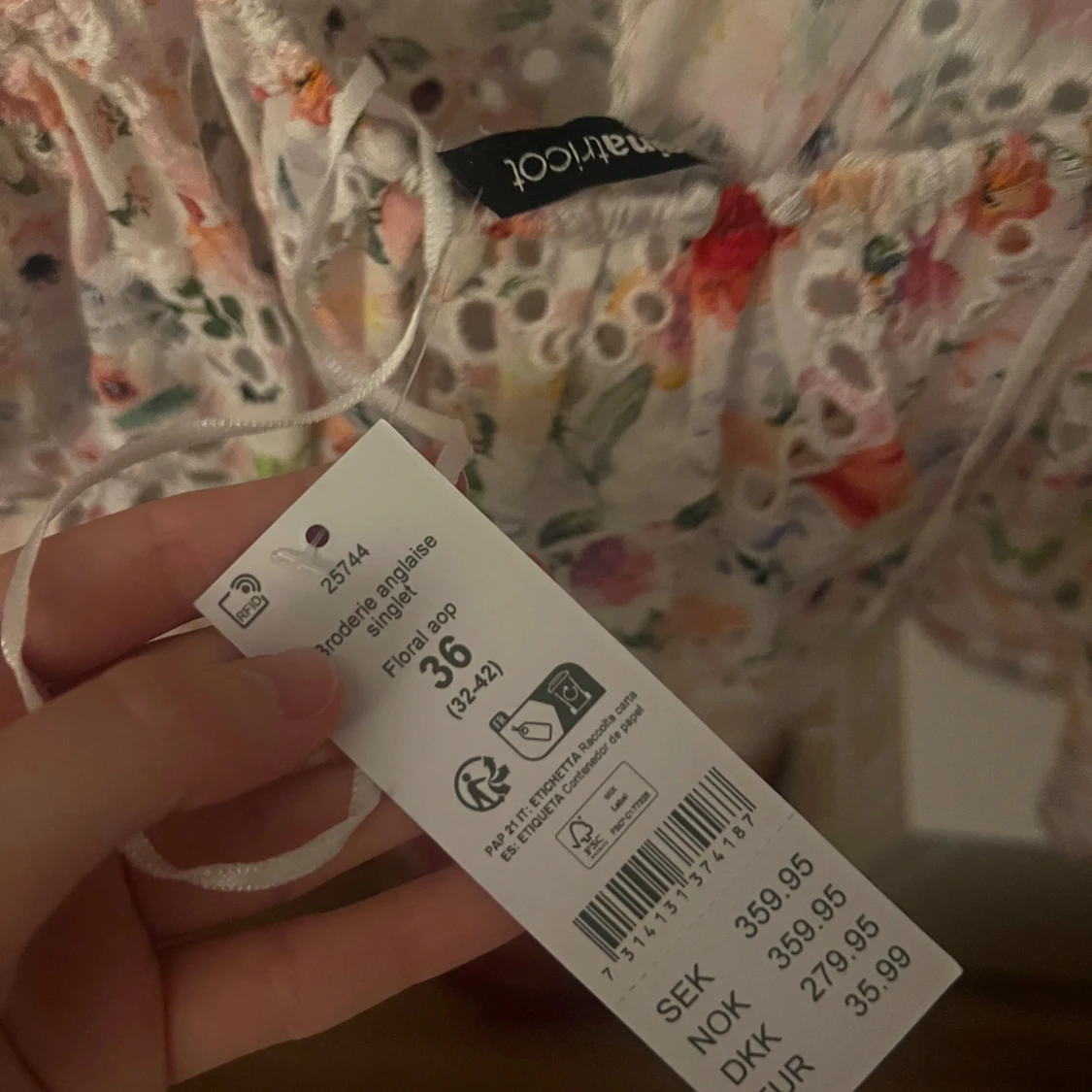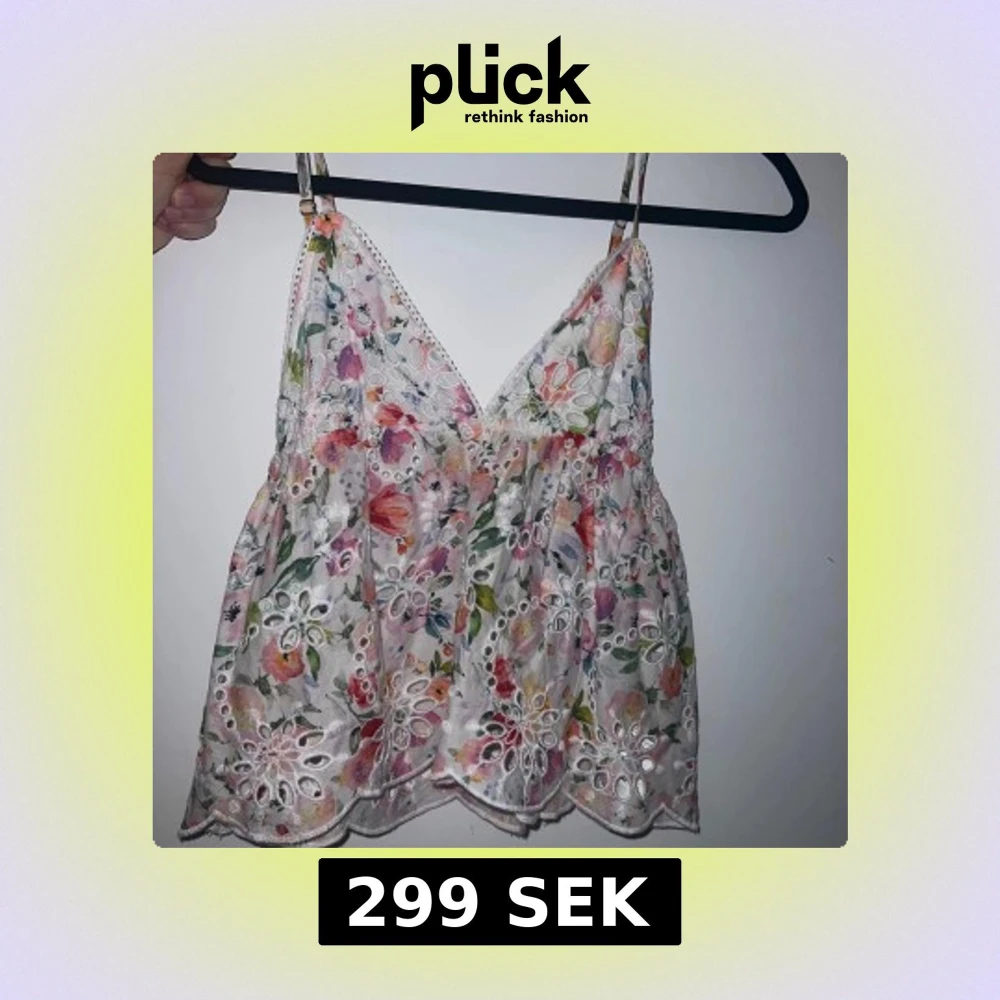 Aldrig använd! Superfin linnetopp från Gina tricot i storlek 36 med blommigt mönster i rosa, grön, lila och orange. Toppen har broderade hålbroderier, tunna axelband och v-ringning. Perfekt för sommarens alla tillfällen och ger en romantisk vibe. Prislapp finns kvar.