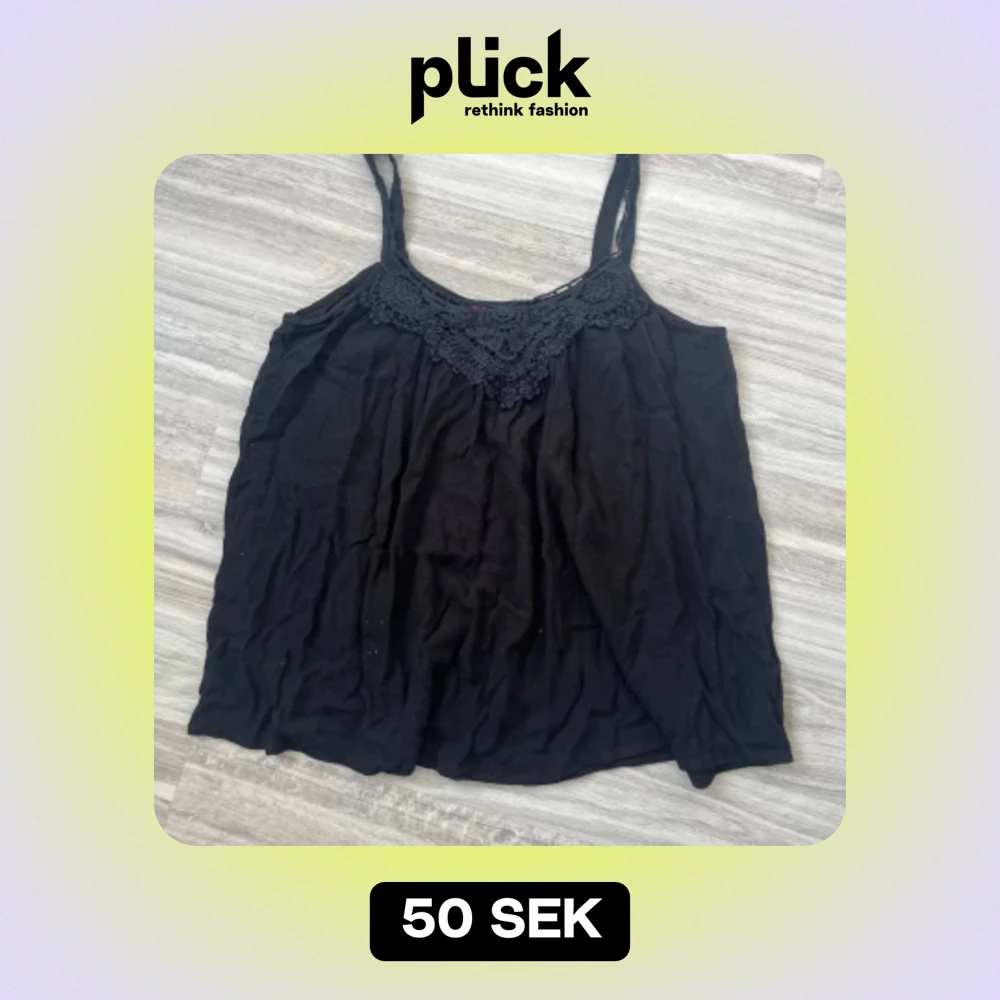 Säljer ett svart linne med fina spetsdetaljer vid halsen. Den är från Indiska och I storlek M. Linnet har smala axelband och är tillverkat i ett mjukt och bekvämt material. 💝