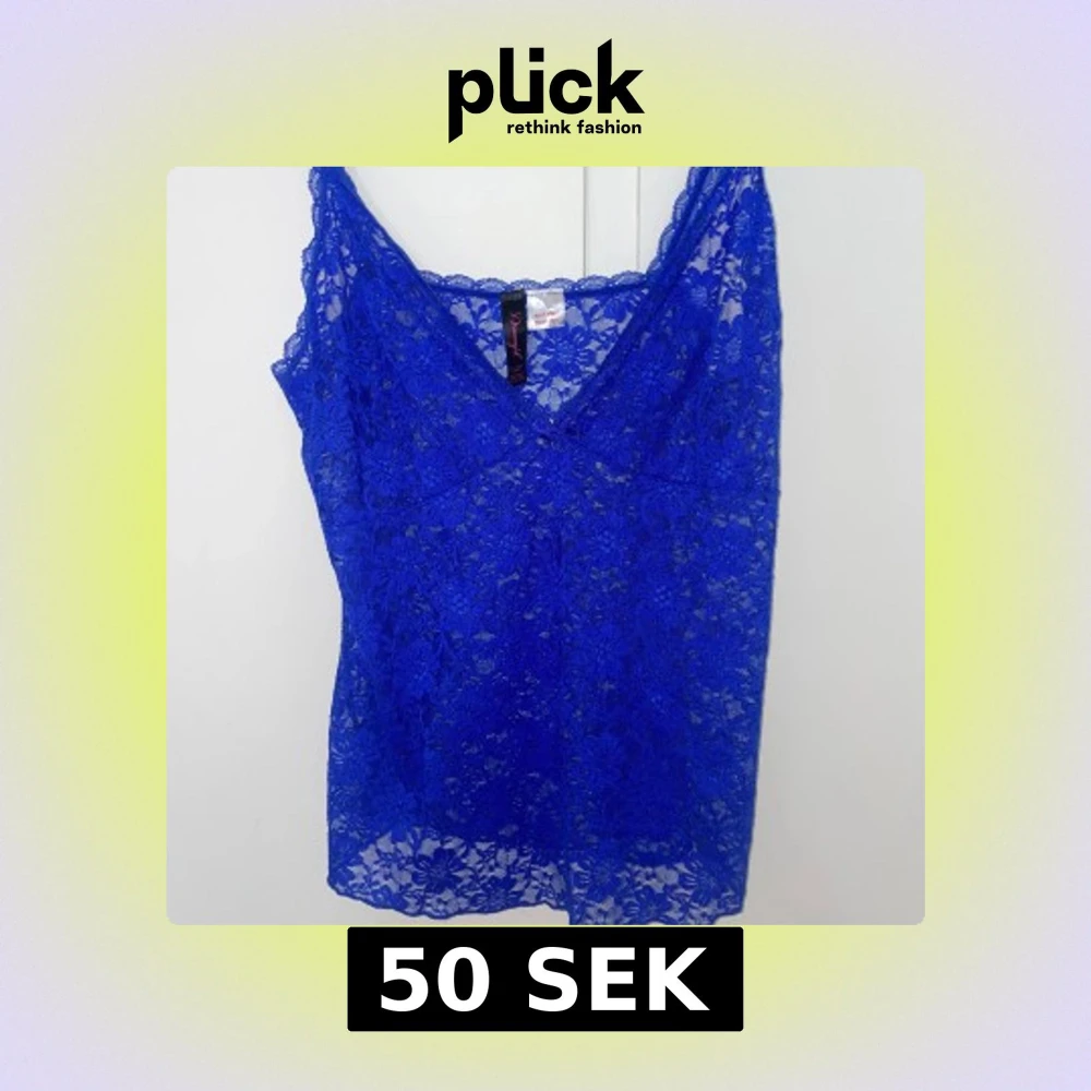 Säljer ett blått linne från Dreamgirl i transparent spets med blommigt mönster. Linnet har smala axelband och v-ringning, perfekt för att ge en extra touch till din outfit. Superfint att styla lager på lager eller som det är.