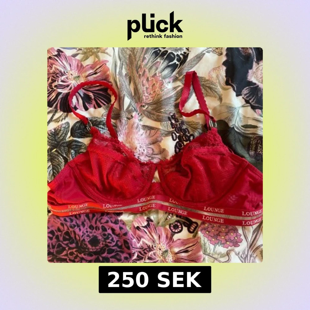 Snygg röd bralette från Lounge med spetsdetaljer och elastiskt band med logga. Modellen har tunna justerbara axelband och transparent mesh. Finns tillhörande trosor, därav högre pris. Vill du bara ha bhn får du gärna föreslå pris!