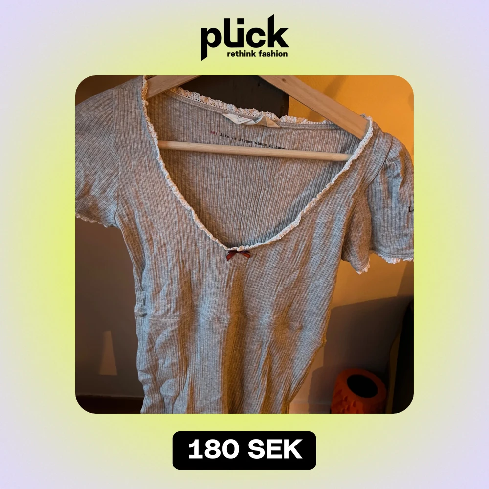 Säljer en superfin grå topp/blus från Odd Molly i storlek 1. Den har korta ärmar spetsdetaljer. Lite skrynklig på bilderna.