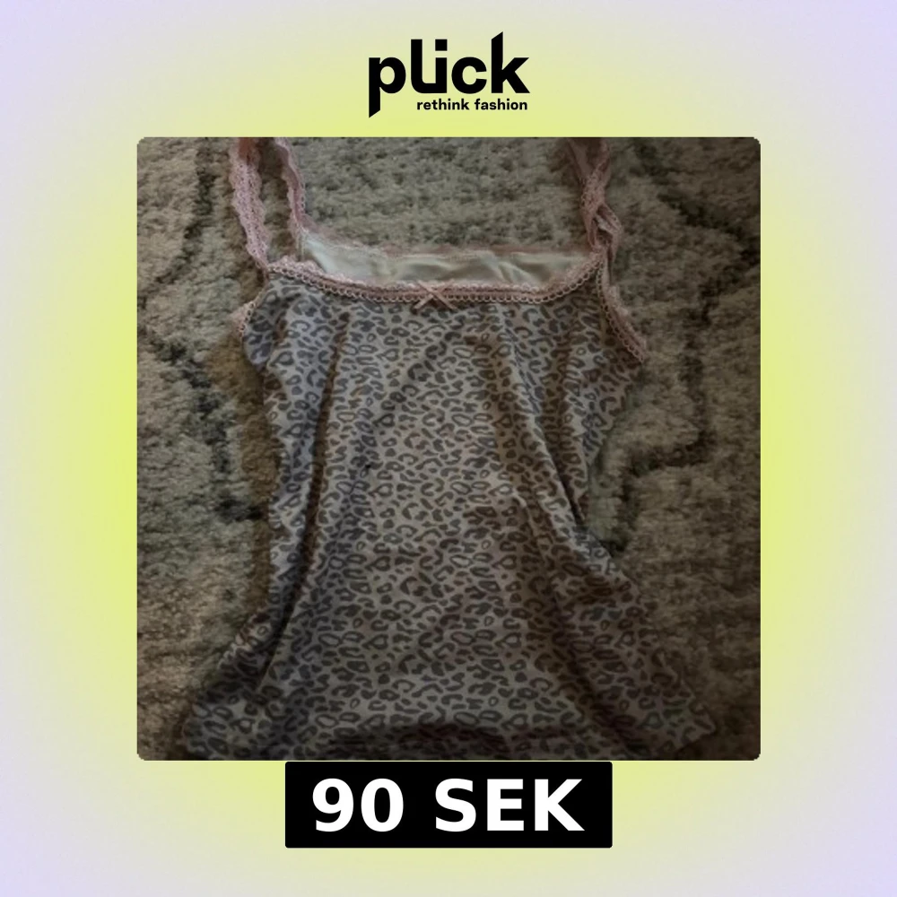 Supersöt linnetopp med grått leopardmönster och ljusrosa spetsdetaljer längs kanterna. Axelbanden är också i spets och framtill finns en liten rosett.