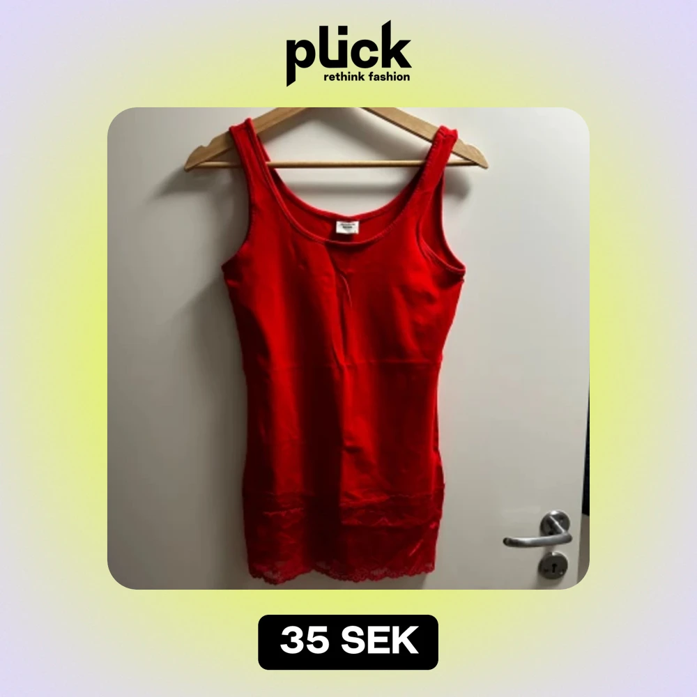En röd topp med spets i botten storlek S