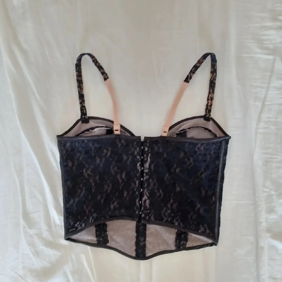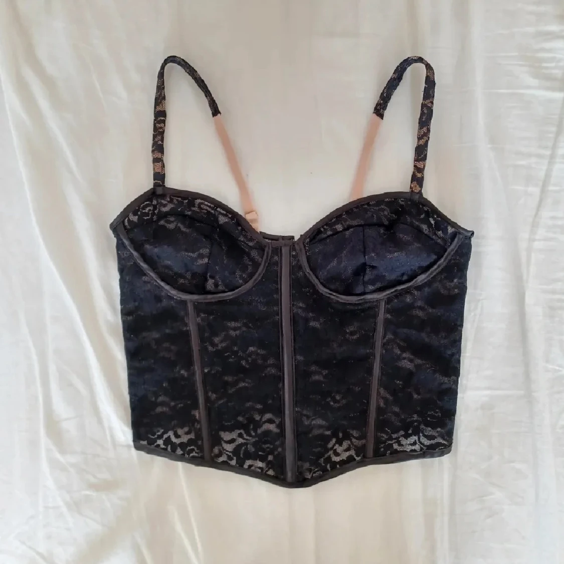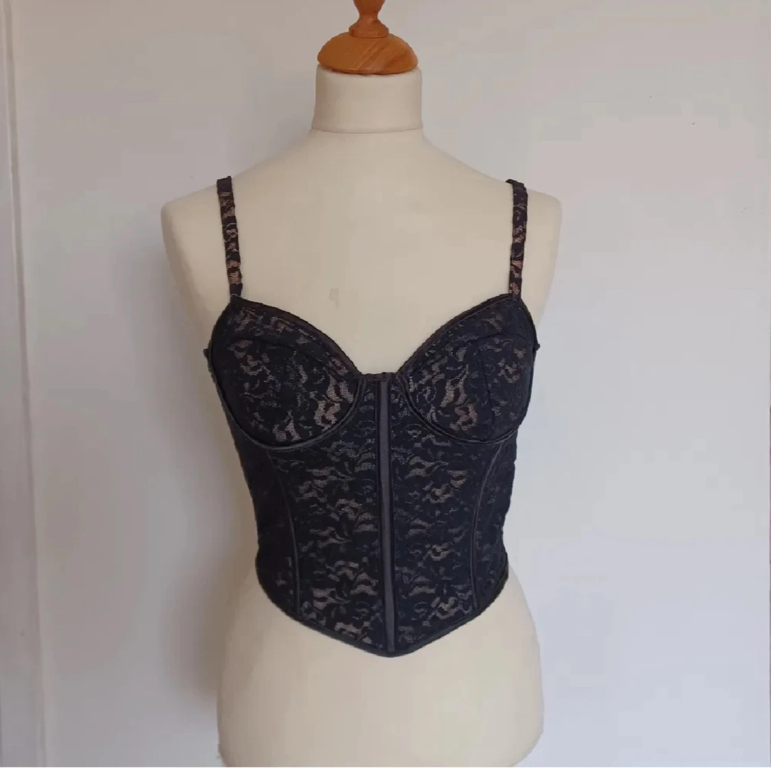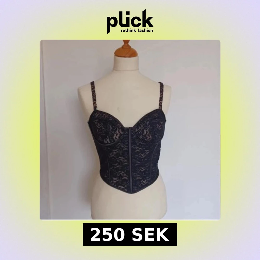 Säljer en svart korsett med spets. Storlek xs/s passa folk med B/C kupa.