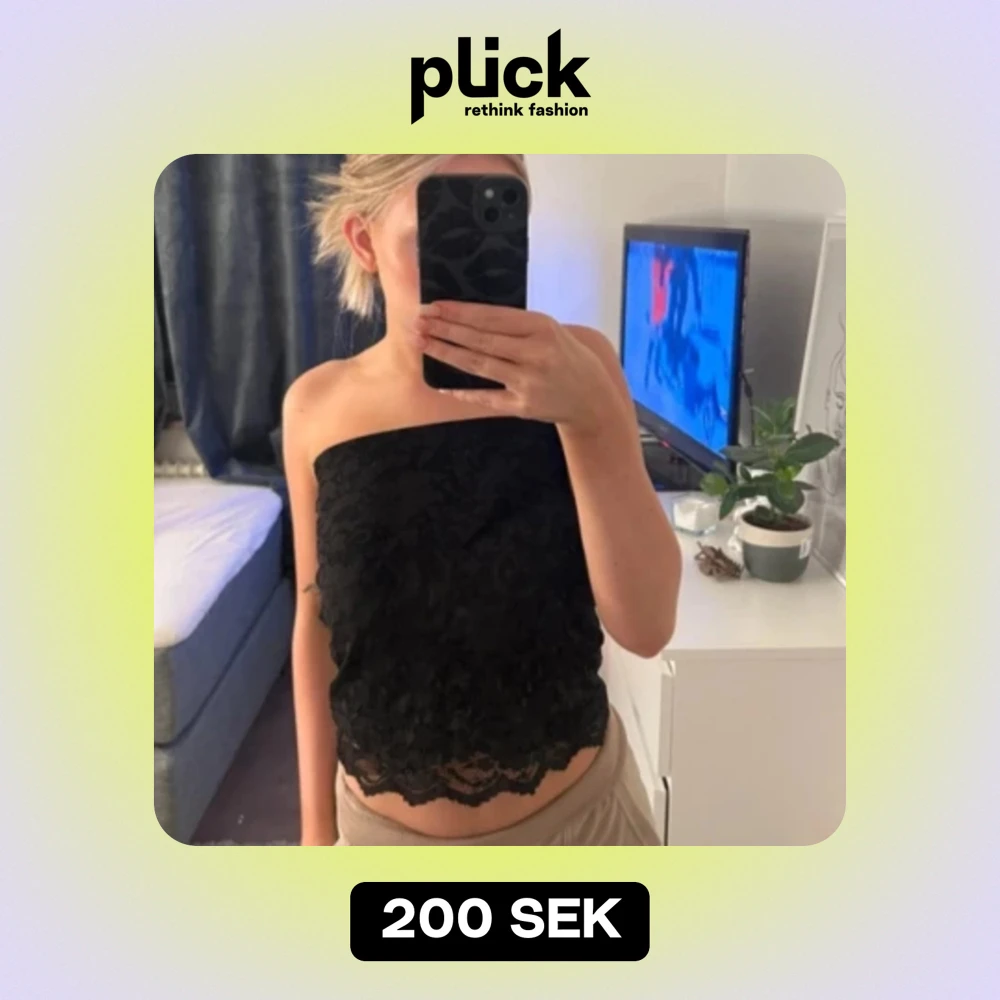 Svart spets topp utan band, skriv för fler bilder, knappt använd. 🫶🏽