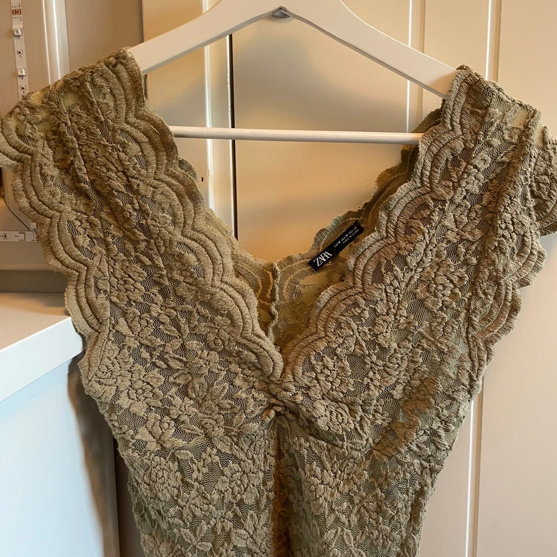 Jättefin grön topp från Zara, perfekt till höst! Den har en unik grön färg och sitter jättefint på✨ endast använd 1 gång