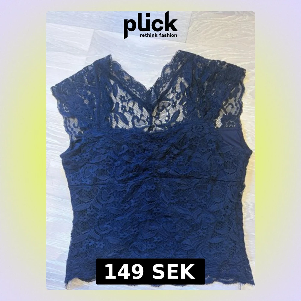 Mörkblå spets topp med fina detaljer.