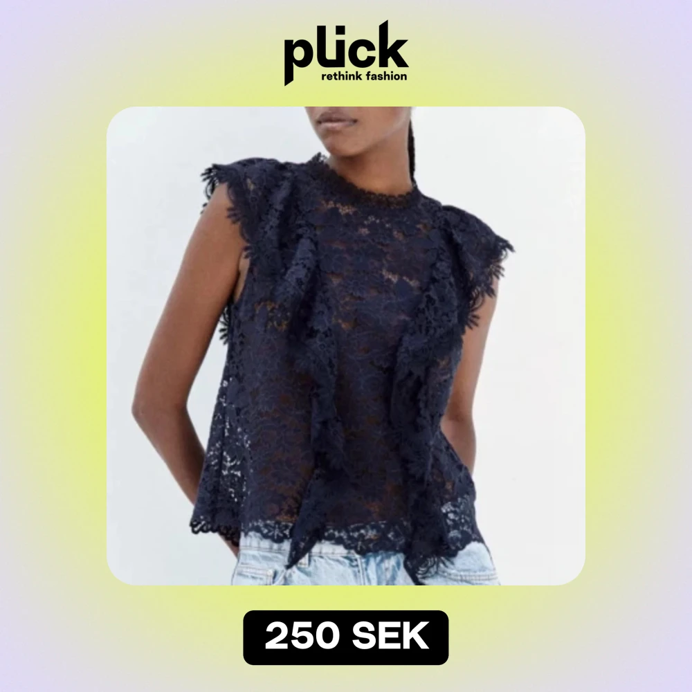 Säljer min marinblåa spets tröja från zara som nästan inte är använda i storlek M men passar S💕