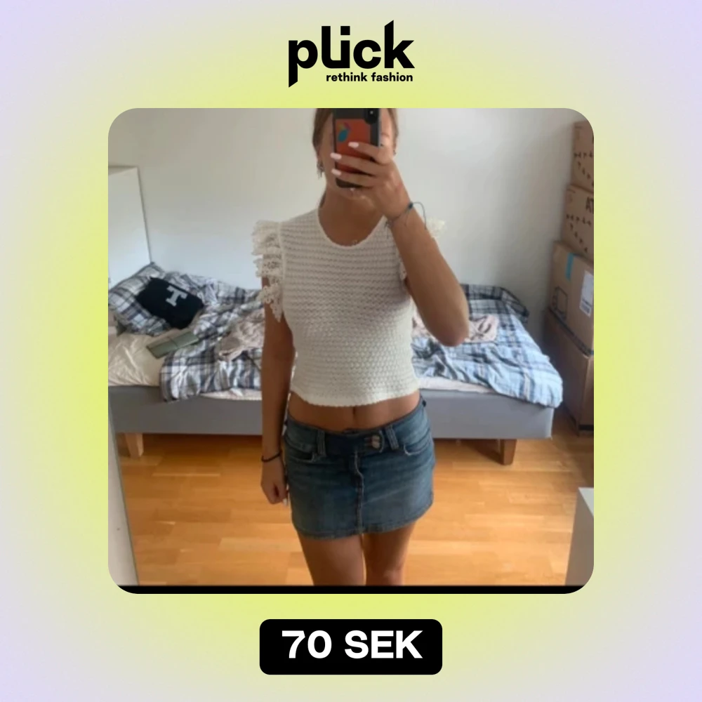 Säljer en superfin vit stickad topp från Zara. Den är ärmlös med snygga spetsdetaljer på axlarna som ger en extra touch. Bara använts fåtal gånger. Kom med pris förslag💓