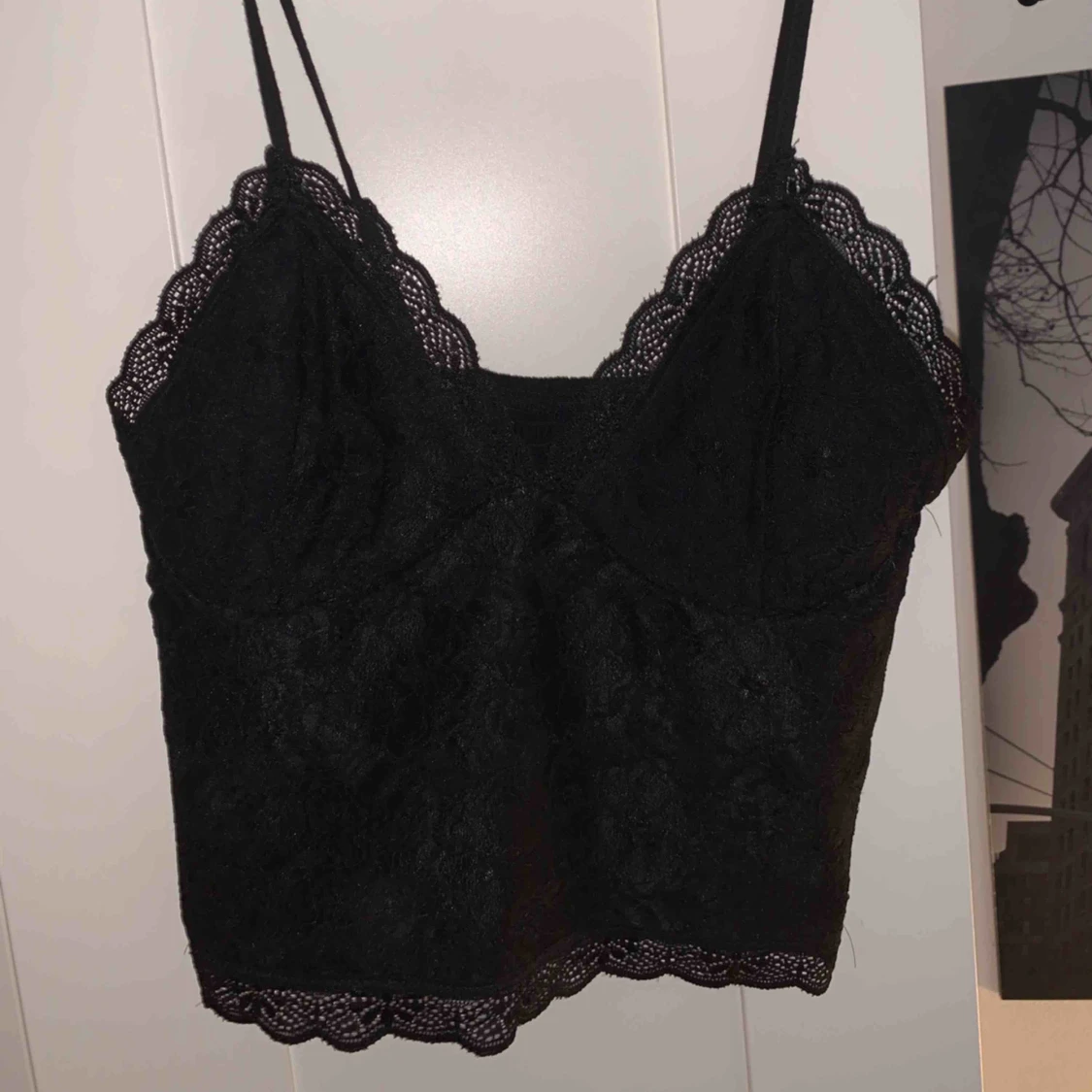 Ett svart spetslinne, endast använd vid fåtal tillfällen. Köparen står för frakt :)