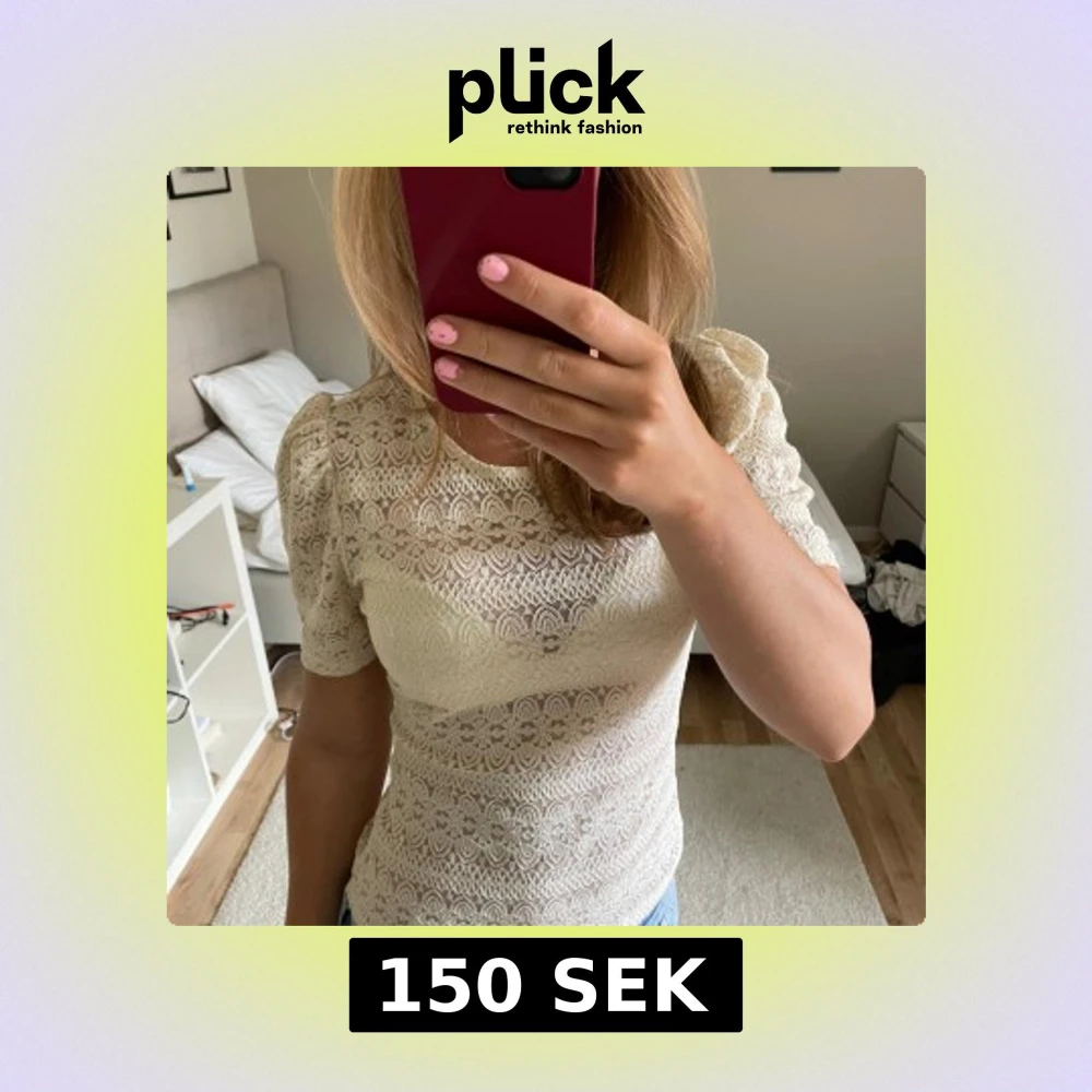 Vit spetsblus från VILA, med puffiga armar. I strl S💓har knappt använt!