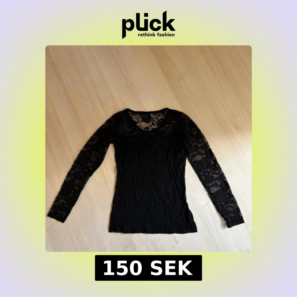 Svart långärmad blus med transparent spets upptill och på ärmarna. (Skrynklig då jag inte strykt den!)🥰