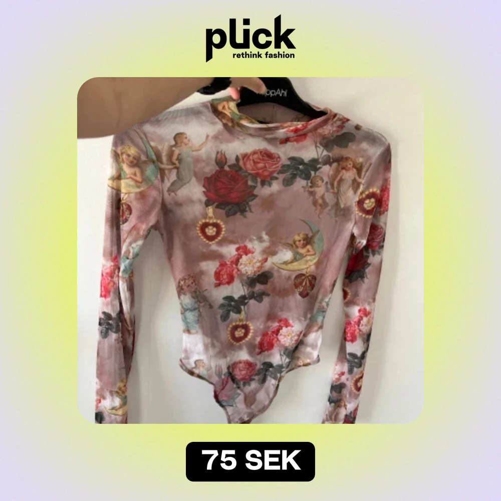 Spetsbody med ängelmotiv, går upp en aning vid halsen. Har inte använts så mycket Skickas nytvättad